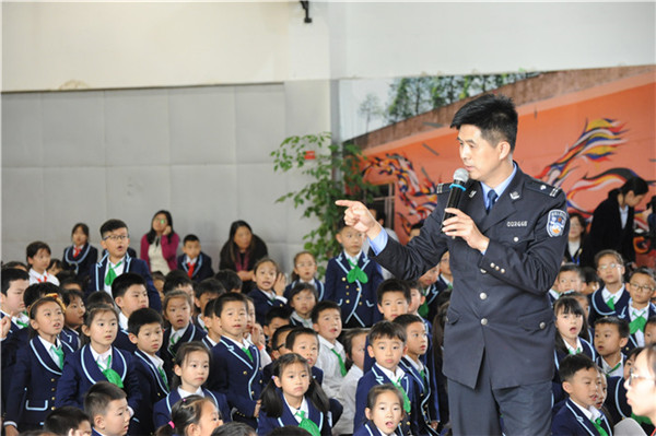 在一个小时的安全课堂中,黄警官与孩子们亲切交流,噱头十足、寓教于乐的讲课形式深受同学们的欢迎,全场掀起了一阵又一阵的掌声和欢呼声。明星警官"来袭",孩子们自然听得格外认真,学得不亦乐乎,安全知识也牢牢记在了心间。