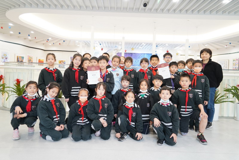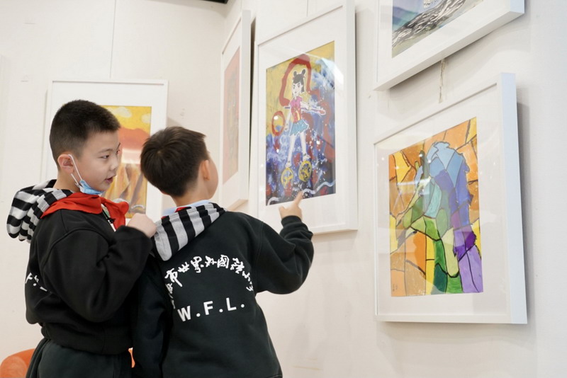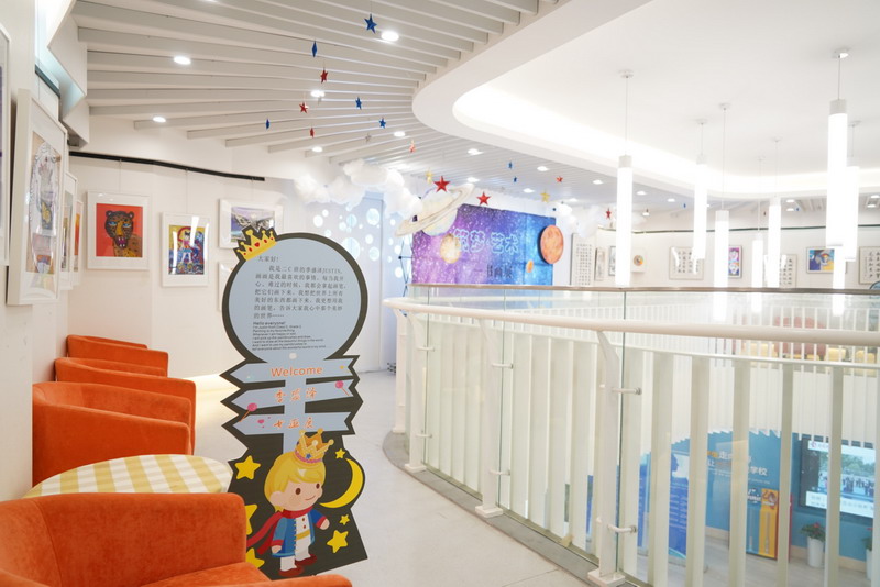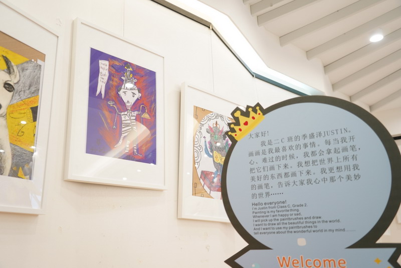 How do you present the wonderful world? How do you build your dreams? Oscar and Justin from Class 2C from the Bilingual Section present their naive dreams through colorful paintings. They held “Build dreams through Art”in the gallery on the second floor.