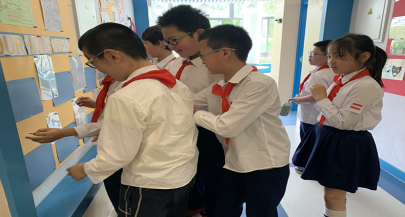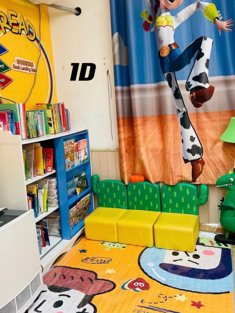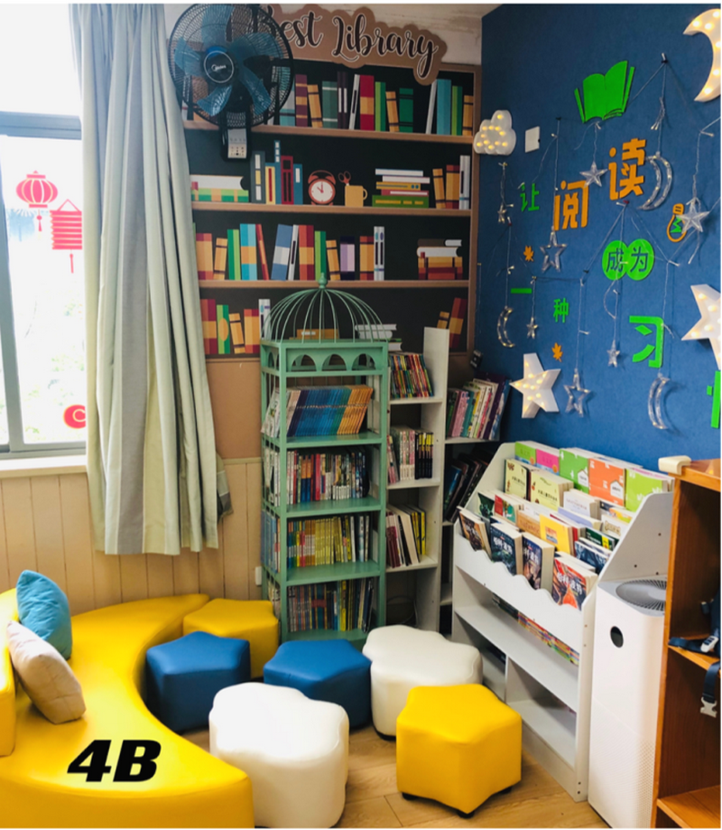 The teachers created a nice reading environment for the students. In the classrooms, there are warm and child- friendly reading corners. It provides the students a quiet area for reading.