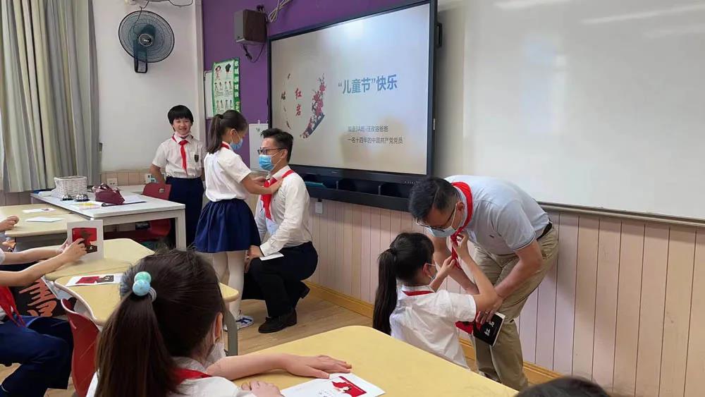 上午8点半,活动正式拉开帷幕。孩子们为家长代表戴上了鲜艳的红领巾。代表家长现场诵读了红色经典,用他们宽广、深厚的品格与睿智、博学的人文力量深深地感染着孩子们,与孩子们共度诵读时光。At 8:30 a.m., the activity began. The children presented a red scarf to the representatives of the parents. They in turn recited a classic "Red" poem. They impressed the childrenwith their wisdom, knowledge and tolerance.