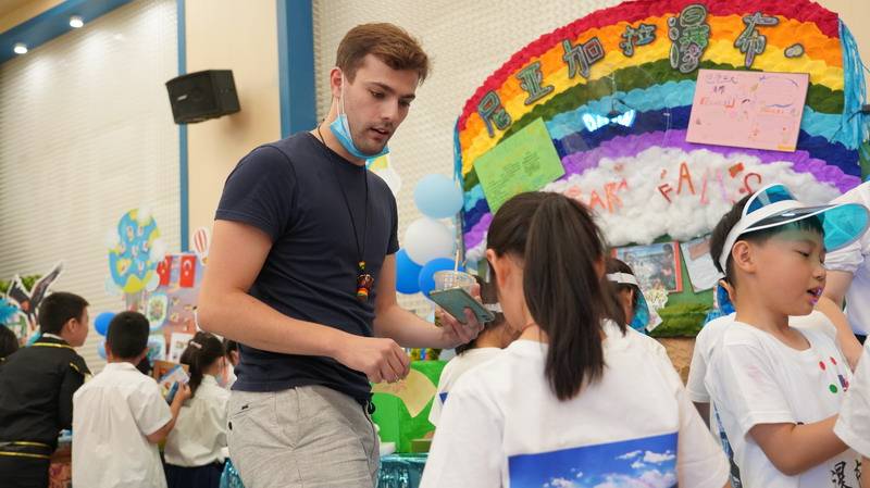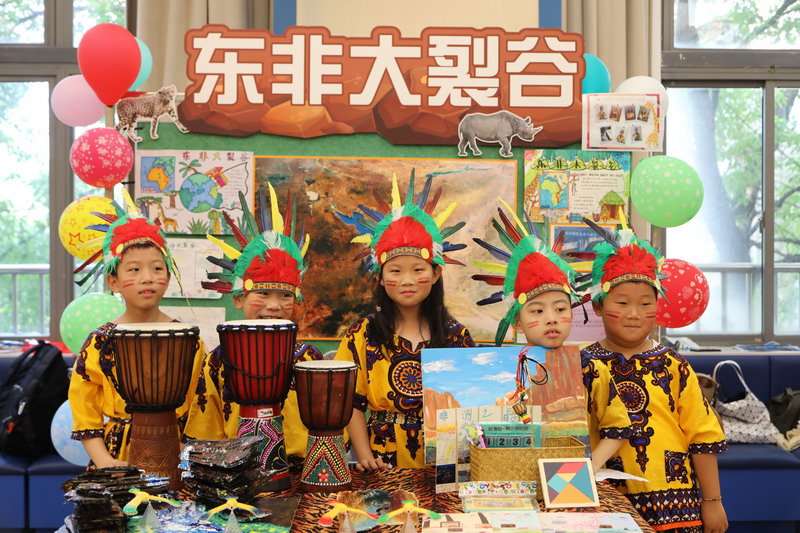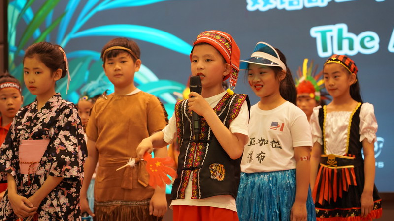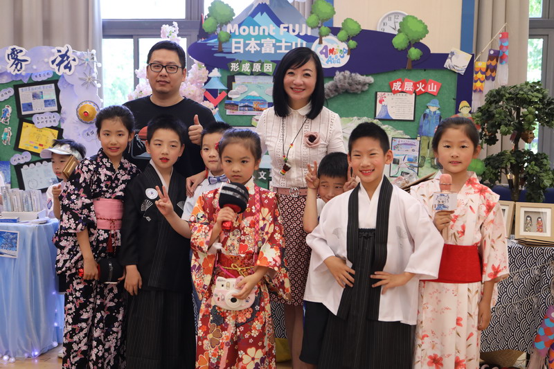 在2A班的小朋友们自编的欢快歌谣中,我们来到了熟悉的亚洲,这里有:中国—鬼斧神工的吉林雾凇、甘肃丝绸之路张掖、马尔代夫荧光海滩与日本的活火山富士山。The 2A students sang joyful songs which they composed. We visited a familiar part of Asia. Here we saw the hoarfrost in Jilin China, the Zhang Ban of the Silk Road of Gansu,the beaches of the Maldives and the volcanic mountain of Mount Fuji in Japan.