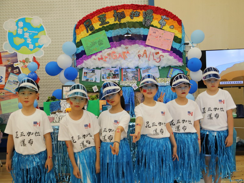 2B班的小朋友研究的是北美洲,那里有“极光之都”阿拉斯加费尔班克斯、地球上的神奇乐园“黄石公园”、世界上最大的水晶洞穴“奈卡水晶洞”与世界三大瀑布之一“尼亚加拉”大瀑布。The 2B students researched North America where they discovered “the capital of the Aurora in Alaska Fairbanks, the magic paradise on the earth at “Yellowstone Park”, the world’s largest crystal cave at Naika and one of the world’s three largest waterfalls - Niagara Falls.