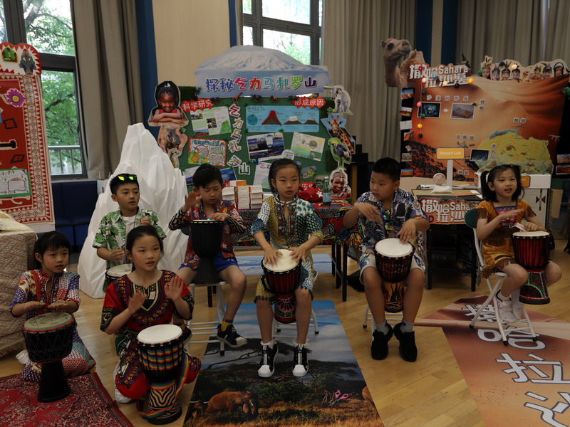 Wow!There are some children performing African Dances. We hear the melody,and we see the sandy “Sahara Model”. 2D class researched the Ngoro volcano, the East African Rift Valley, the Sahara Desert and Mount Kilimanjaro.