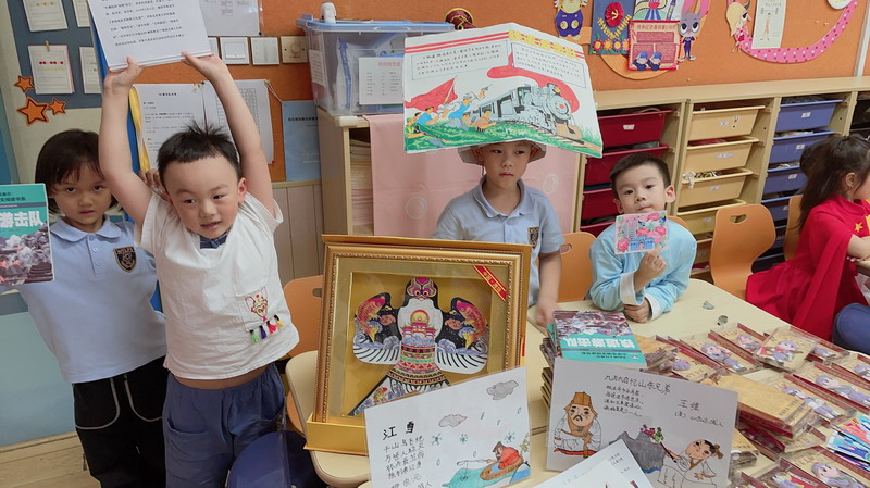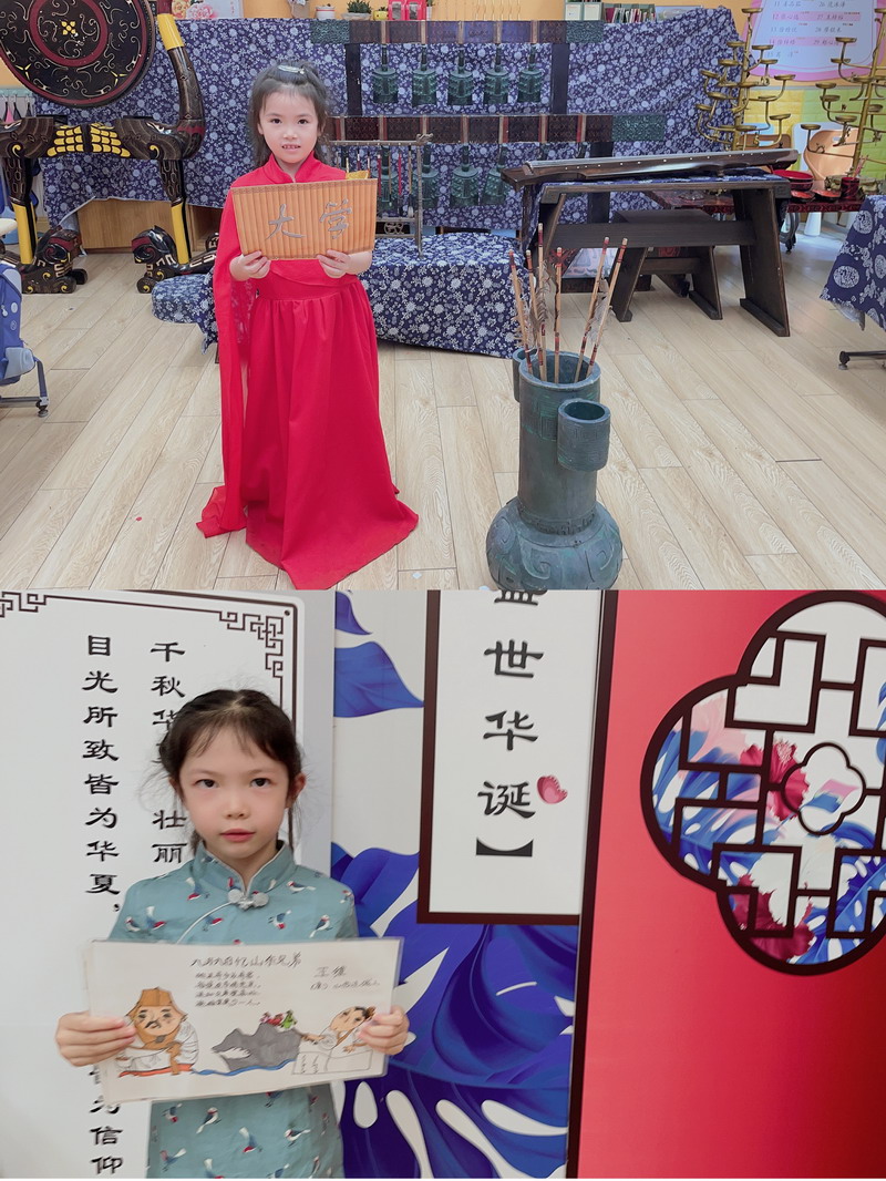 Here is the historical “Shan dong Museum”. First we saw the knowledgeable “Confucius”who is reciting <The Analects of Confucius>. There are hand-made Qu fu Confucian temple, nice Shan dong kites, poem poster...two cool Shan dong warships impressed everyone a lot! The visitors listened to the stories, played pitch-pot game and paper-cutting...