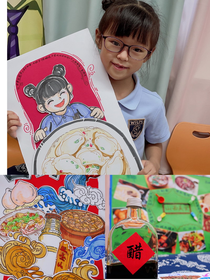 让我们把镜头转到1B班的山西博物馆和山东博物馆。1B班分别从美食、建筑、历史和文化四方面介绍了山西省和山东省。Let’s take a look at 1B Shan xi Museum and Shan dong Museum. 1B introduced Shan xi Province and Shan dong Province through 4 aspects:food, construction, history and culture.