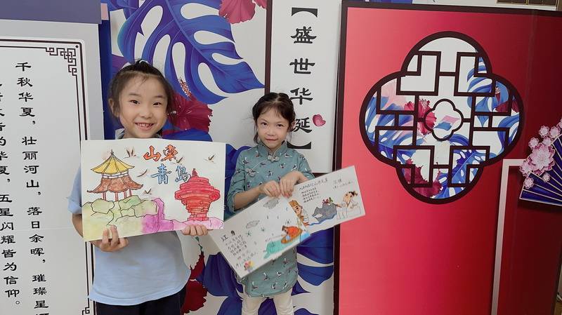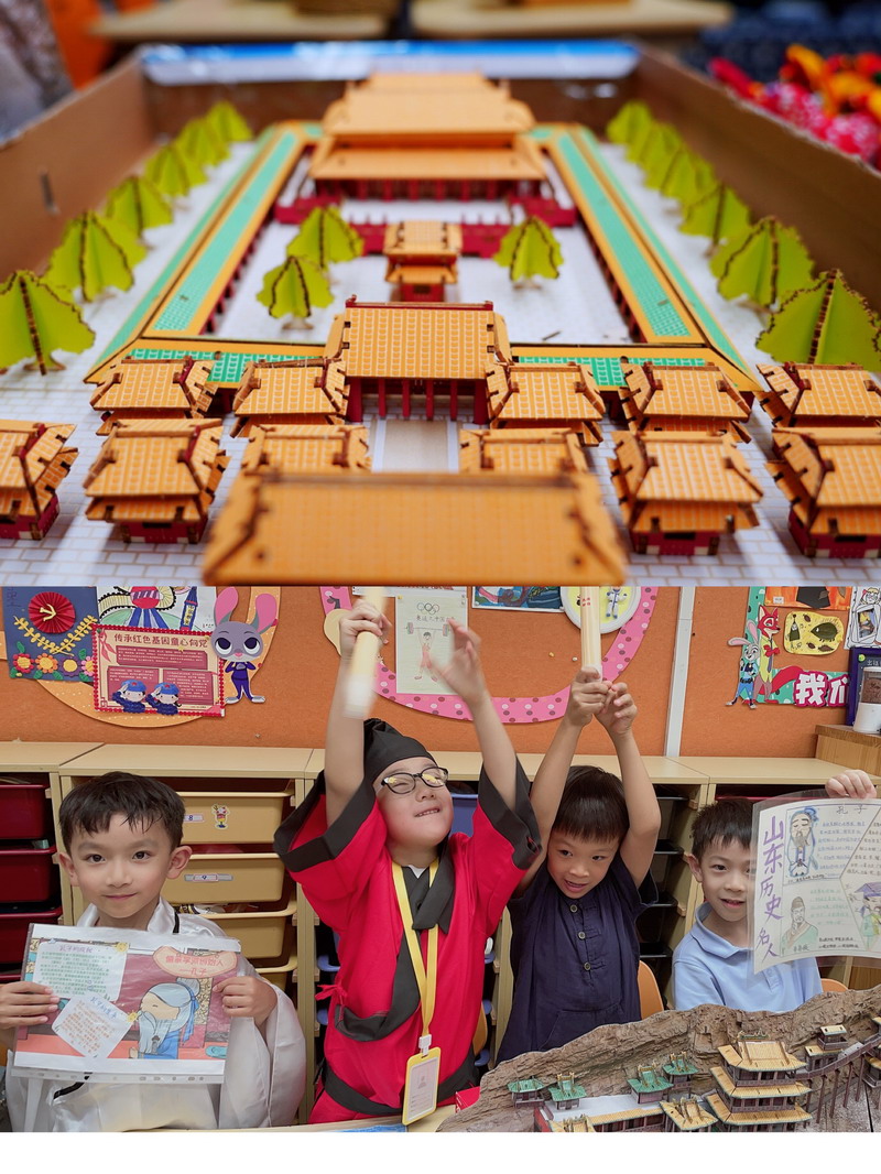 再移步到历史悠久的“山东博物馆”,映入眼帘的是知识渊博的“孔老夫子”为大家吟诵《论语》,桌上陈列着全手工的曲阜孔庙,精美的山东纸鸢,手绘古诗小报……令人印象最深刻的是两艘帅气的山东舰!参观的小观众们兴致勃勃地听故事、投壶、剪纸……