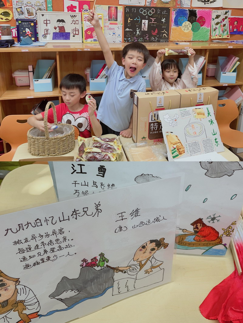 瞧,“山西博物馆”陈列着精美的晋侯鸟尊、兽形觥、山西陈醋、刀削面、山西鼓……琳琅满目,还有一位可爱的山西大同“挖煤小工人”正在教大家山西剪纸呢!最后,一曲慷慨激昂的山东鼓更是赢得了阵阵掌声!
