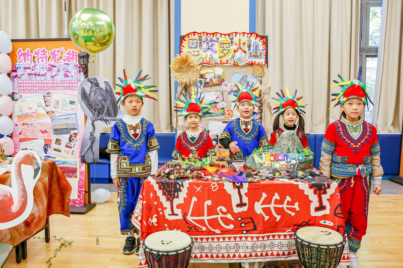 小朋友们分别选择了非洲、美洲、亚洲以及极地四大地域的19个自然奇观进行研究。在这一个学期中,语言、艺术、信息技术等等学科相互联动,为学生提供了广阔的探究和学习的支持。