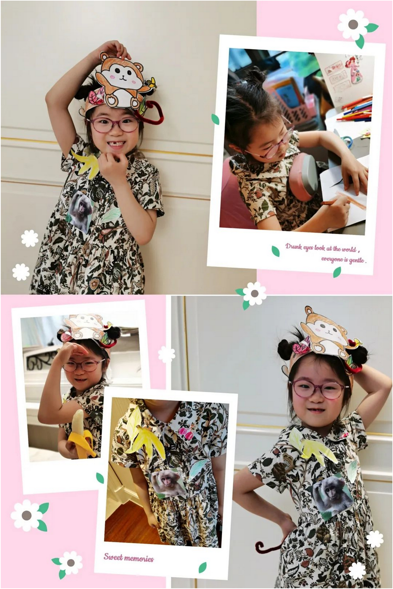 在老师的引导下,小朋友们以小组为单位,对某种野生动物进行探究:它们长什么样?生活在哪里?生活习性是什么?带着这些问题,小朋友们收集资料、DIY动物头饰和服饰、绘制小报、还模仿动物的肢体动作,跳起了韵律操!
