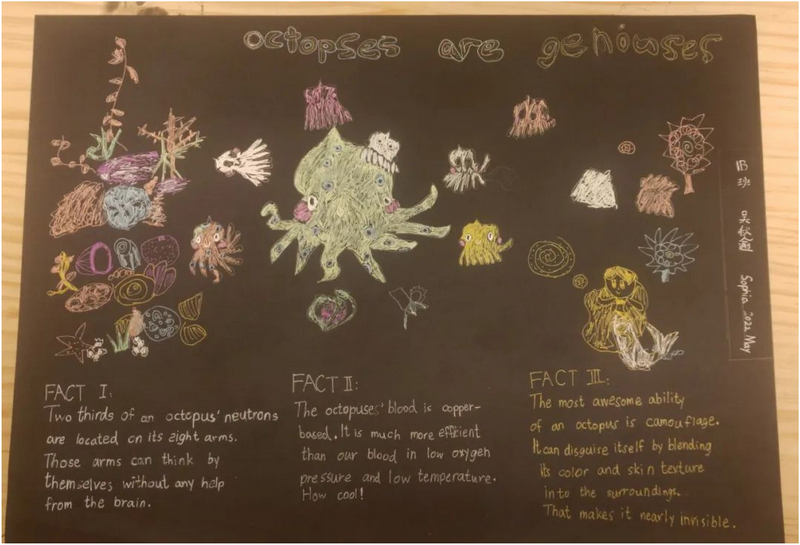 小朋友们根据主题探索动物世界,综合运用语言、科学、美术多学科知识,体验学习的快乐。探索仍在进行中,让我们一起期待学期结束前小朋友们最终的学习成果吧!