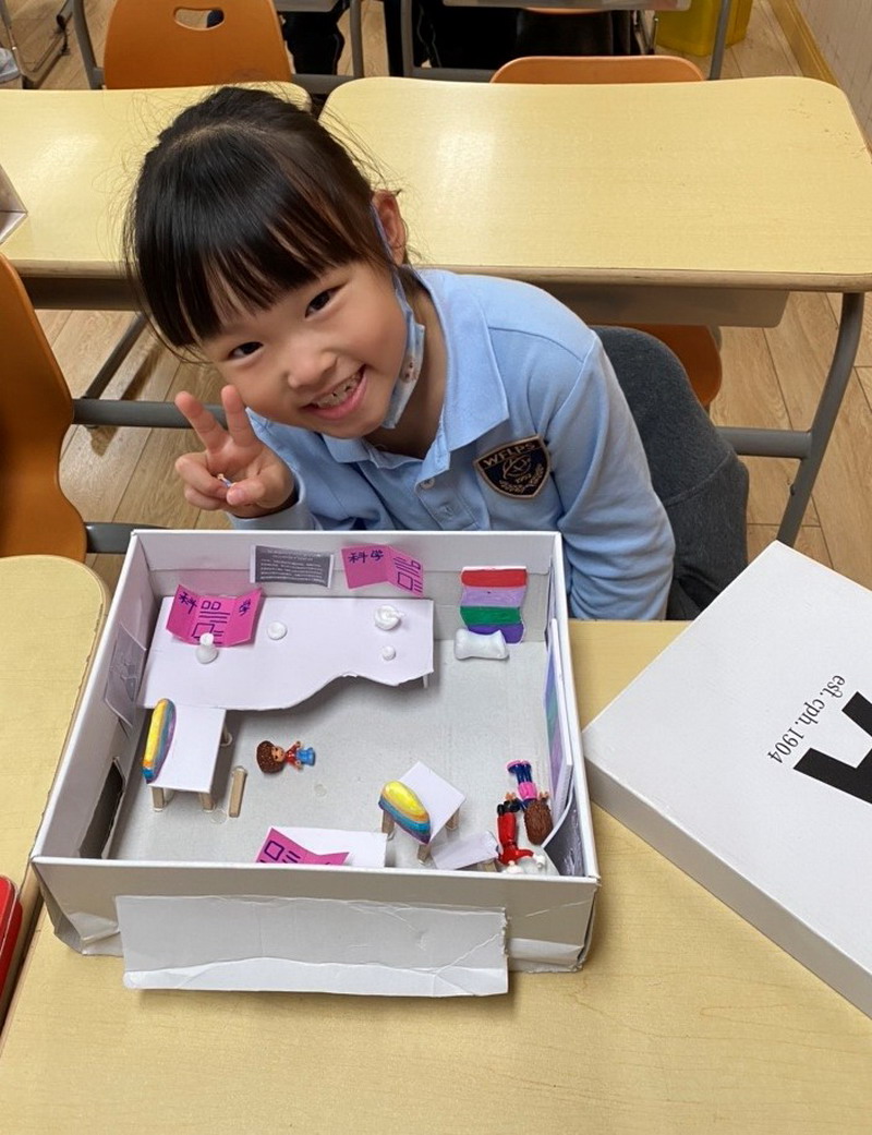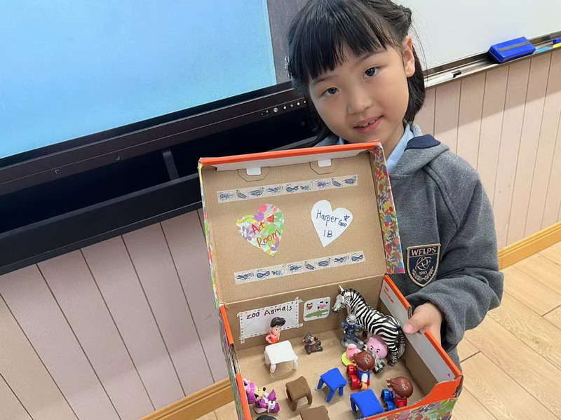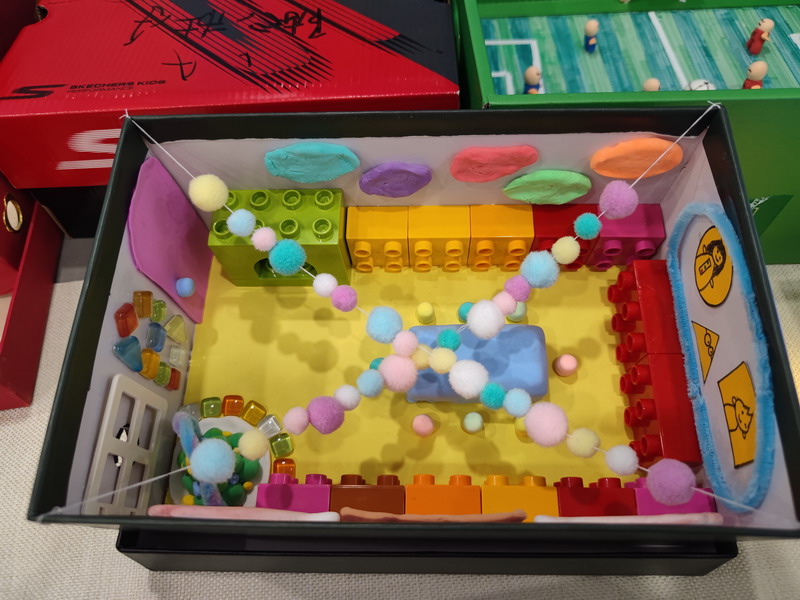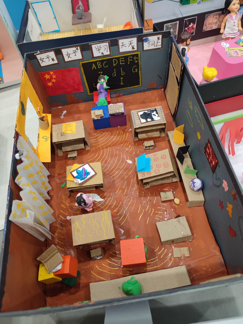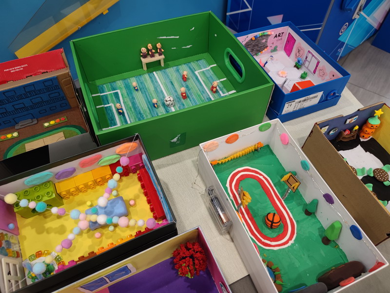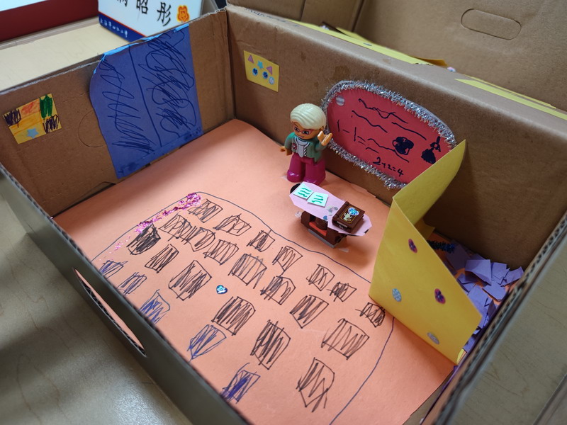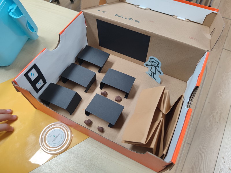 然后,他们需要准备一个鞋盒以及其他身边可用的材料,独立完成梦想教室的制作。