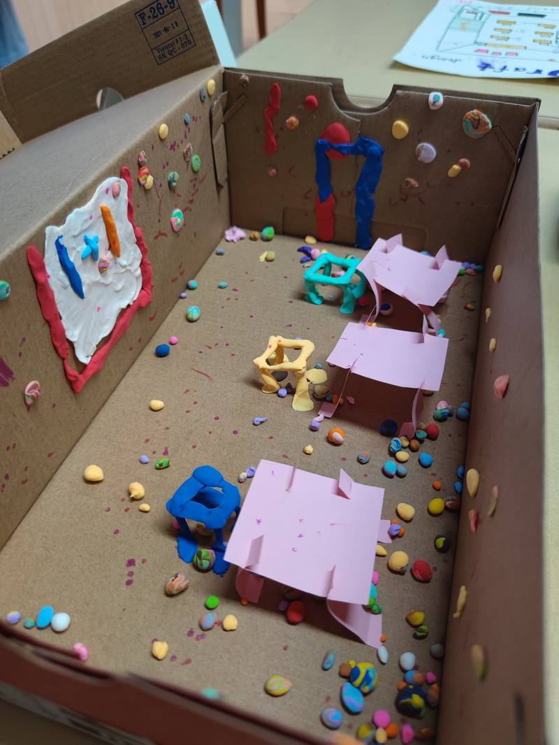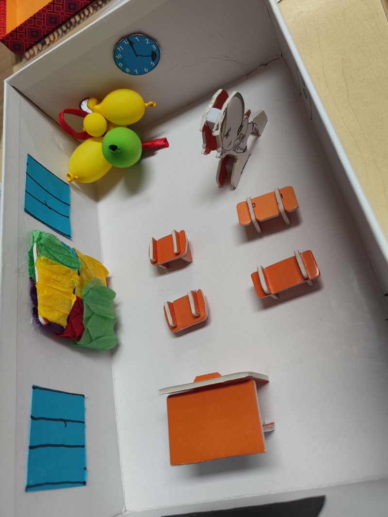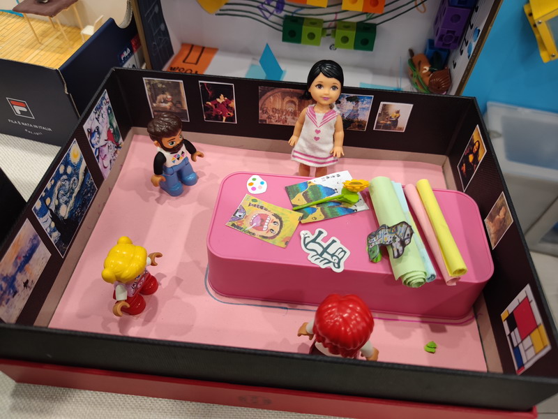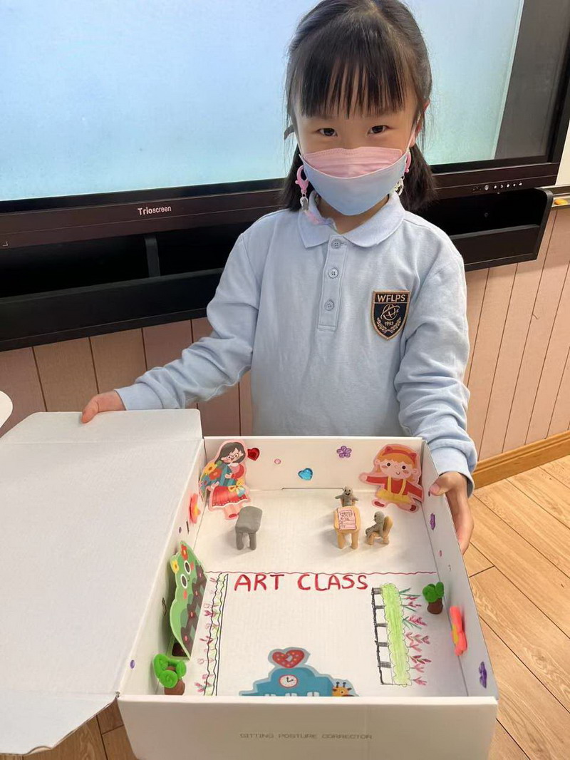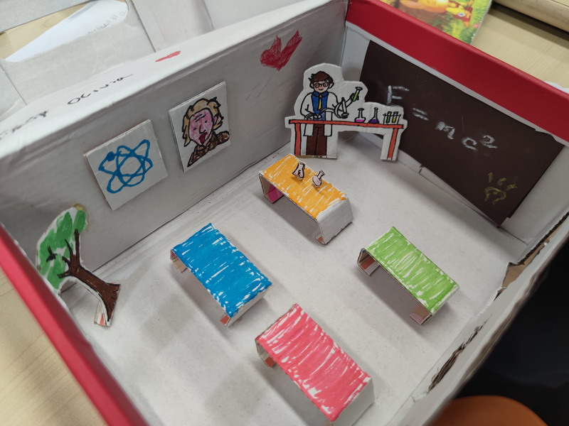 然后,他们需要准备一个鞋盒以及其他身边可用的材料,独立完成梦想教室的制作。