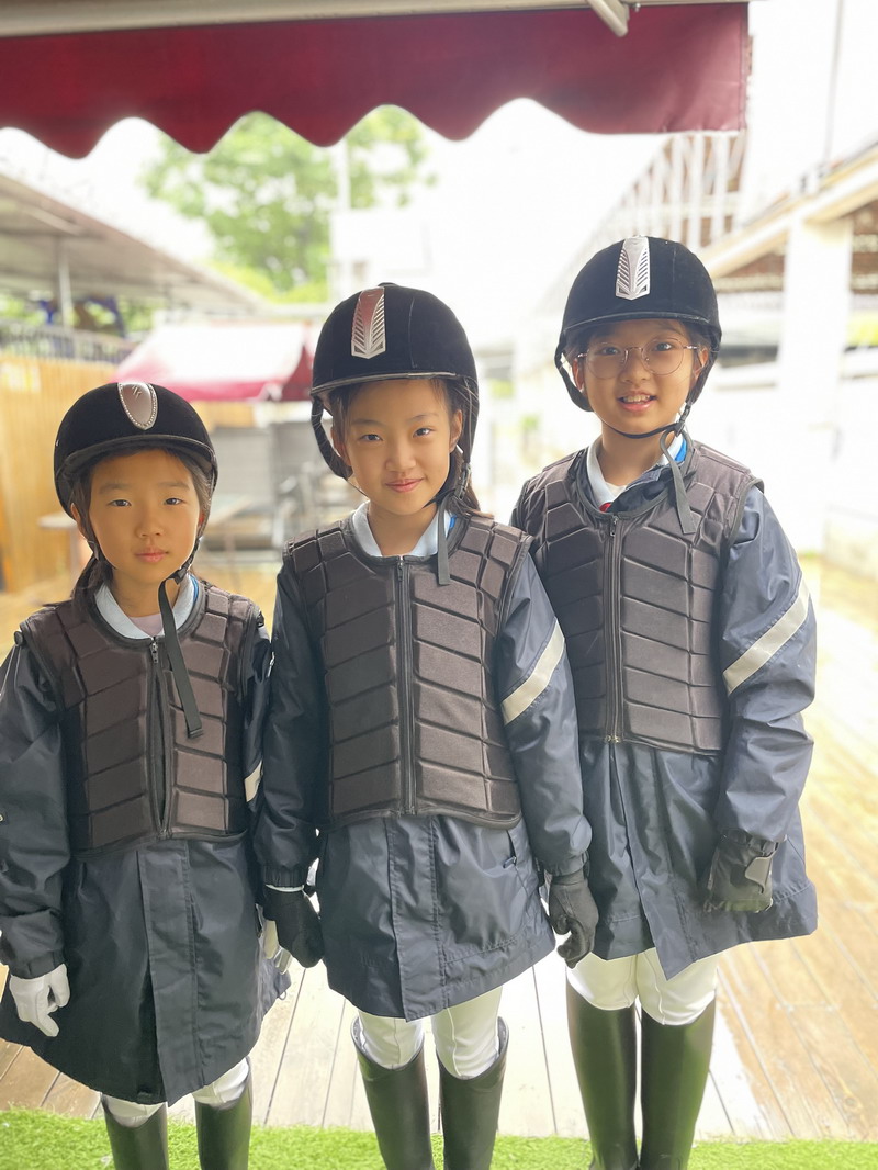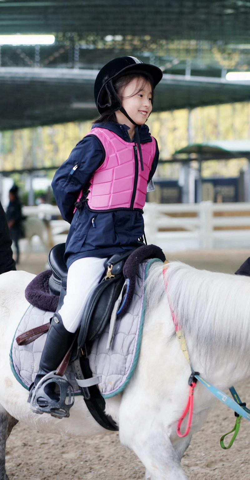 终于等到了跨上马背的骑乘环节,在上马之前,教练帮助孩子们仔细穿戴护具