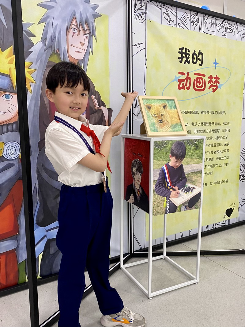 动画一直以来都是孩子们最喜欢的绘画方式之一。各种有趣可爱的动画形象是孩子们的好朋友,他们伴随着孩子们在奇幻的世界里探索与冒险,在快乐中学习和成长。动画不仅是孩子们的童年回忆,更是他们的梦想之源。本次艺术空间画展的主题是“动画梦”,来自双语部三B班的董家鸣同学,他用丰富多彩的作品让大家感受到动画在孩子成长过程中所带来的无尽乐趣。
