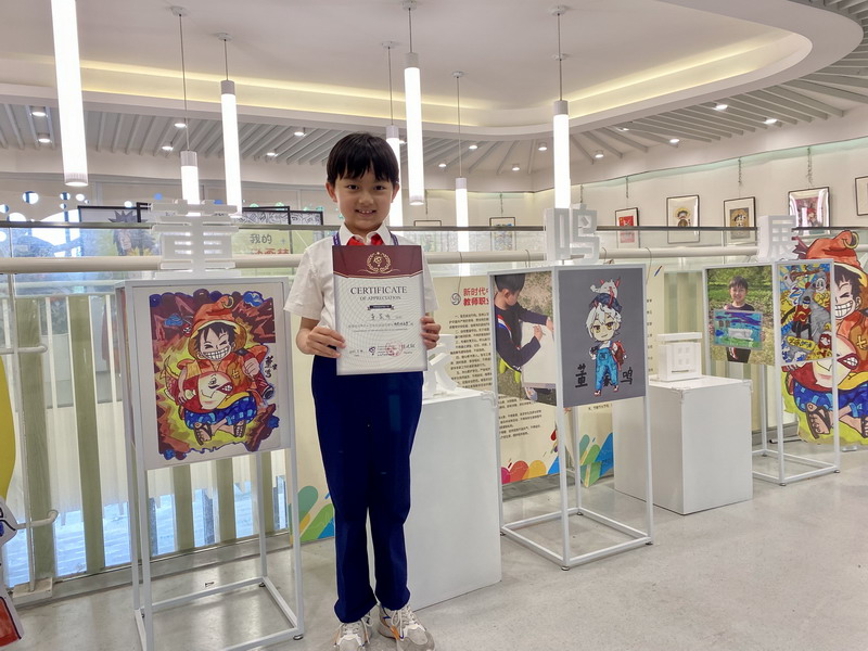 本次画展展示了董家鸣同学在绘画和动漫领域的创作成果,以及他对美好童年的独特诠释。在这里,我们能一起见证一个热爱绘画、痴迷动漫的小艺术家的成长轨迹。董家鸣同学用他的作品表达了对动漫世界的热爱,也让我们看到了他对未来想要成为漫画设计师梦想的执着追求。