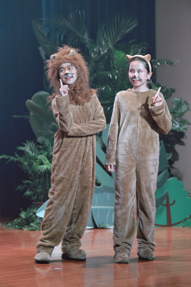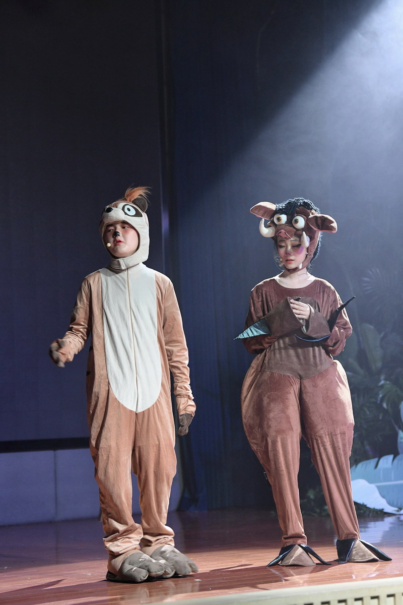 “没有小角色,只有小演员”,无论是主角配角、戏份多少,双语部五年级的每一个学生都十分用心地琢磨自己的角色。他们在音乐课上学习剧目中歌曲的演唱,在形体课上勤练舞蹈,在戏剧课中学习表演。两个多月的努力和付出之后,他们的演技、唱功和舞蹈技巧不断提高,为音乐剧的成功上演奠定了基础。