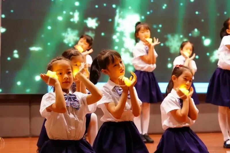 孩子们看得热闹,听得仔细,情不自禁的也一起挥舞着手中的荧光棒,唱起了歌曲《种星星的孩子》。愿云朵成为你们的翅膀,星空照耀着你们向梦想前行。