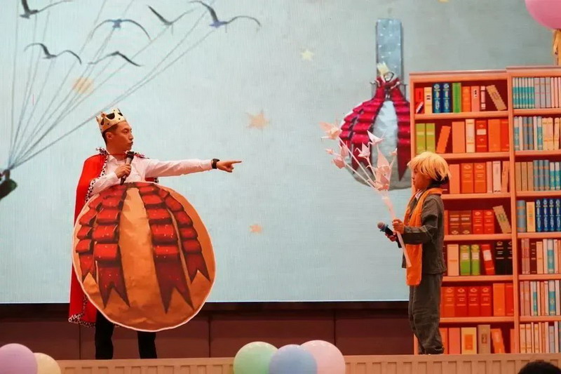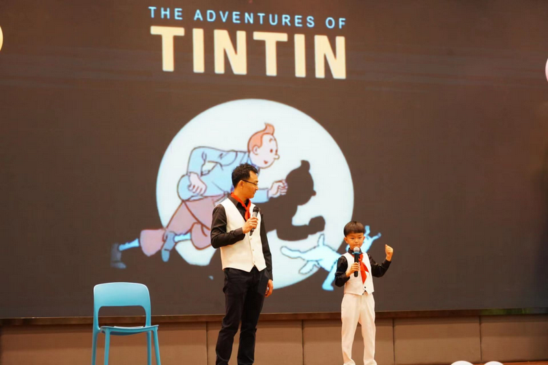 三年级张桐夏和爸爸的《另眼看丁丁》;马益霏及爸爸、杨凯瑄、陈韵言合作表演的《小王子》,将我们带入了三年级“爸爸的书架”。