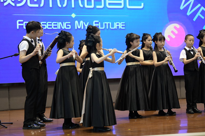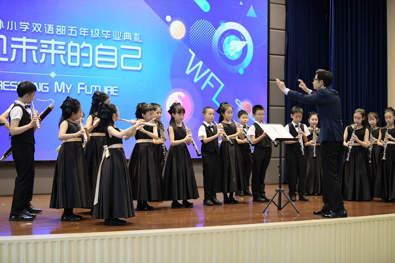 世外“魔角少年管乐团”的学弟学妹们为所有毕业生倾情演奏了一曲relaxing in rio,乐声激荡,心声共鸣。孩子们以精湛的演奏,庆祝双语部108位学生毕业!