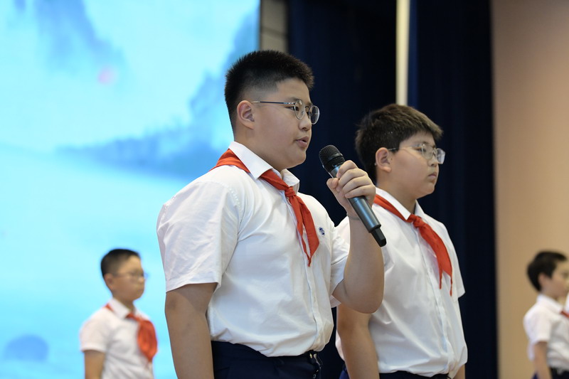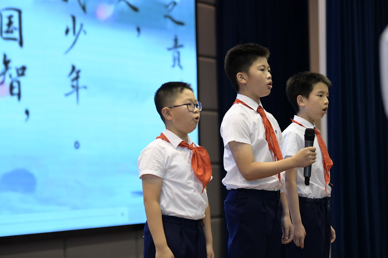台上、台下朗诵梁启超先生的《少年中国说》震撼人心。少年们奋发图强,将成为祖国的栋梁!表达着“鹰击天风壮,鹏飞海浪春”的少年志向!