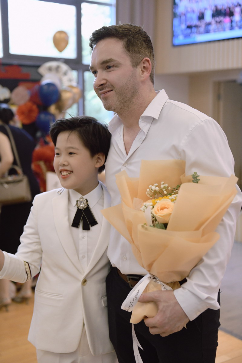 校常设家委沈睿堂同学家长作为家长代表致辞。她说:选择了世外,就是选择了责任。在“高成长性”的校园中,感恩这五年的时光,老师们在阳光下,风雨中在校园里的默默陪伴;感谢学校给了孩子们底气和勇气,坚持让每一个世外学子持续获取拥抱世界、拥抱未来、拥抱幸福的能力!在毕业之际,和孩子们一起表达这份感恩和敬意!