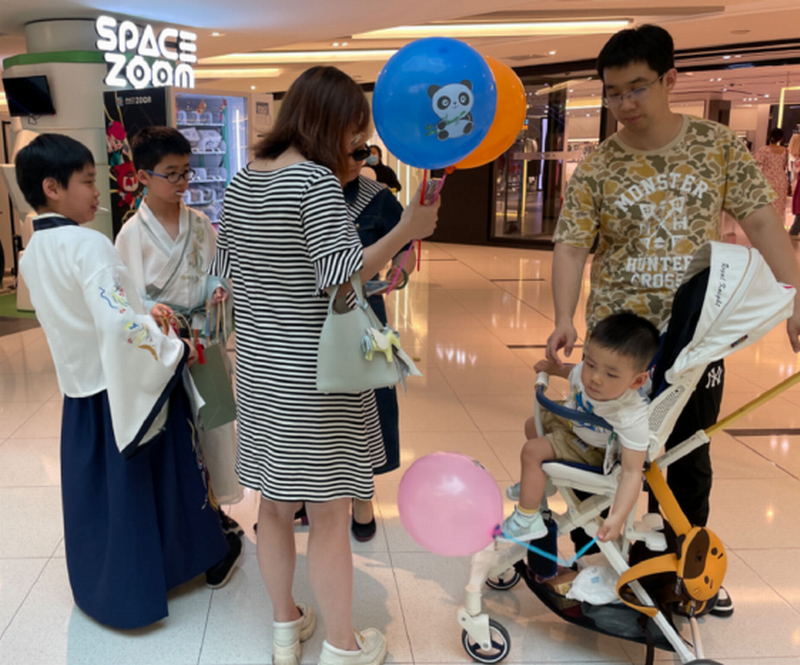 “乐扇好缘”团队根据成本价格区间和产品样式,通过对比选定加工厂家,正式投入生产。随后,团队在商场展厅进行销售路演。孩子们根据顾客的需求和喜好,有针对性地推销不同的产品系列。