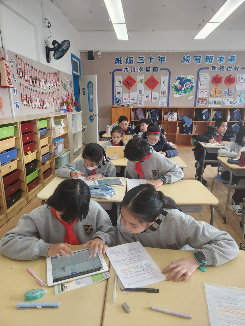 同学们纷纷承担起了“小小外交官”的角色。在初步了解了模联后,“小外交官们”在课堂上根据8个子问题对相关国家进行了资料搜索。在这个过程中,他们不仅学会了如何搜索,甄别,选取资料,同时也签署了在课堂上使用电子产品的协议。