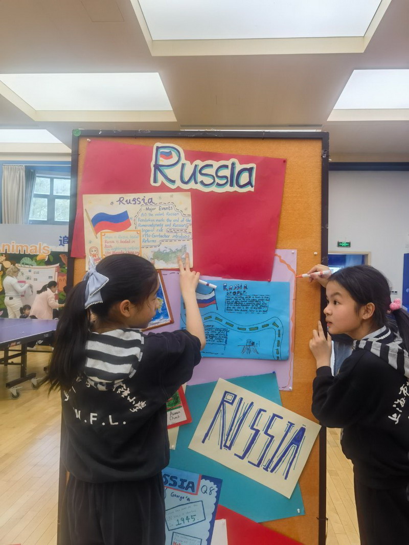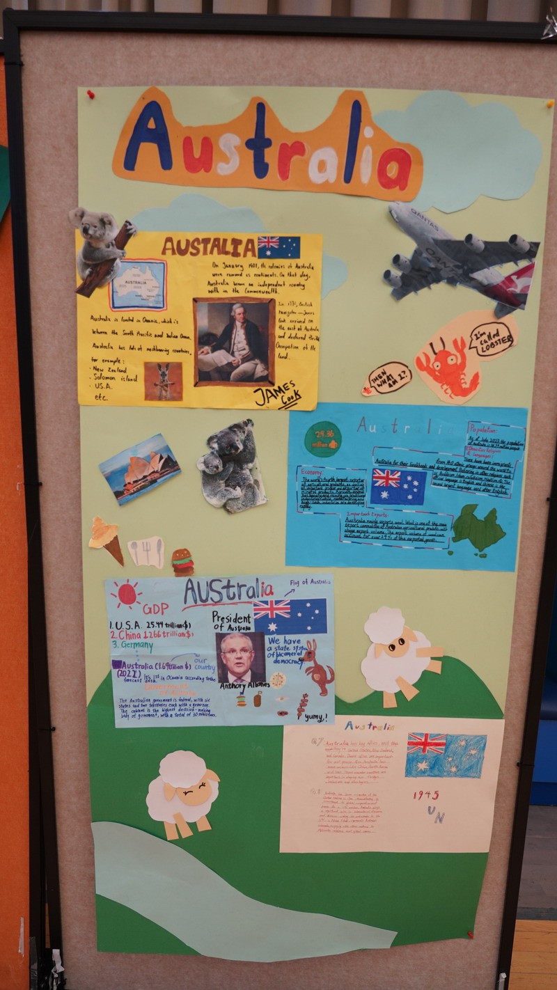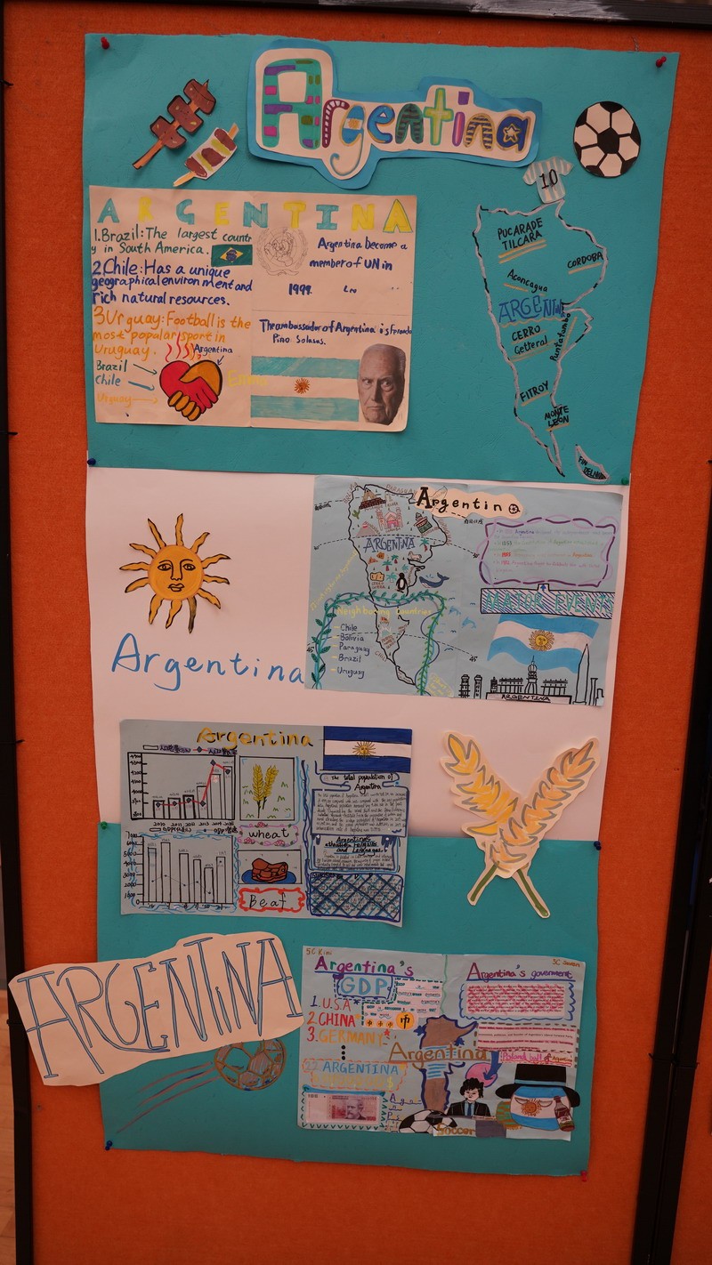 让我们来欣赏一下“小外交官们”的作品吧,看看他们如何通过制作海报、布置展板凸显国家特色。