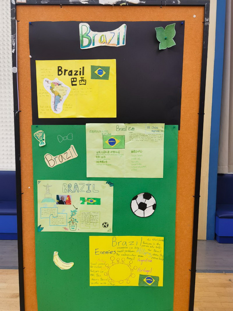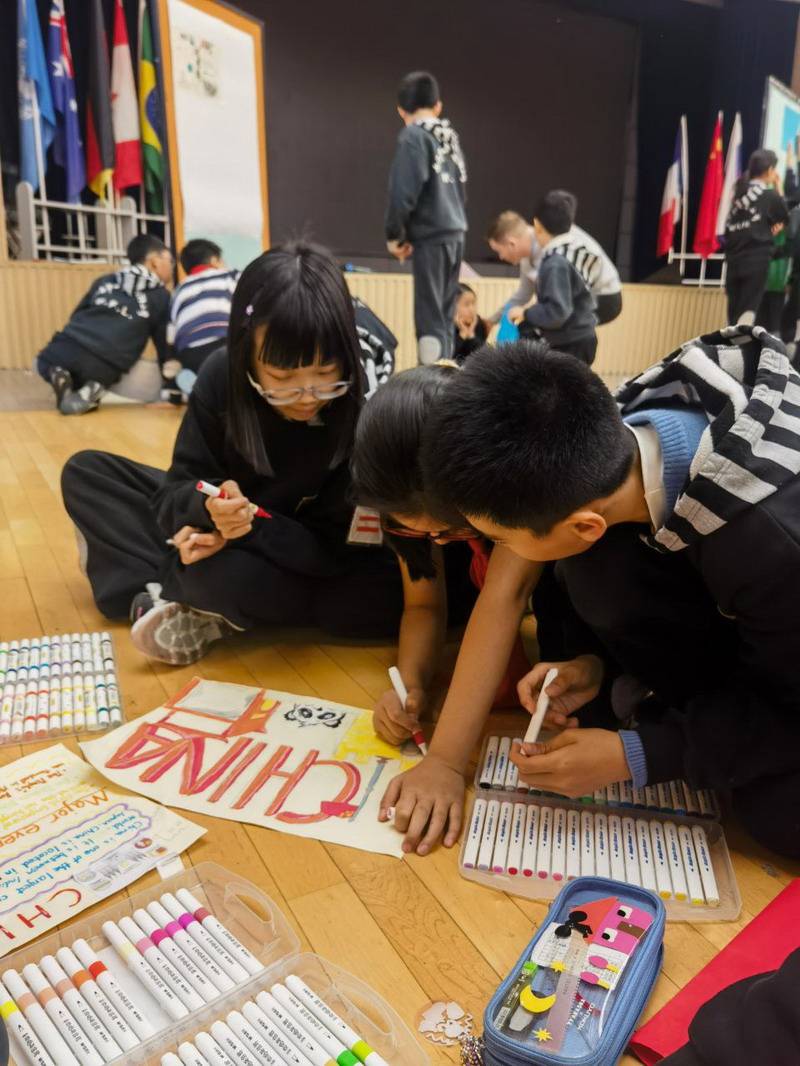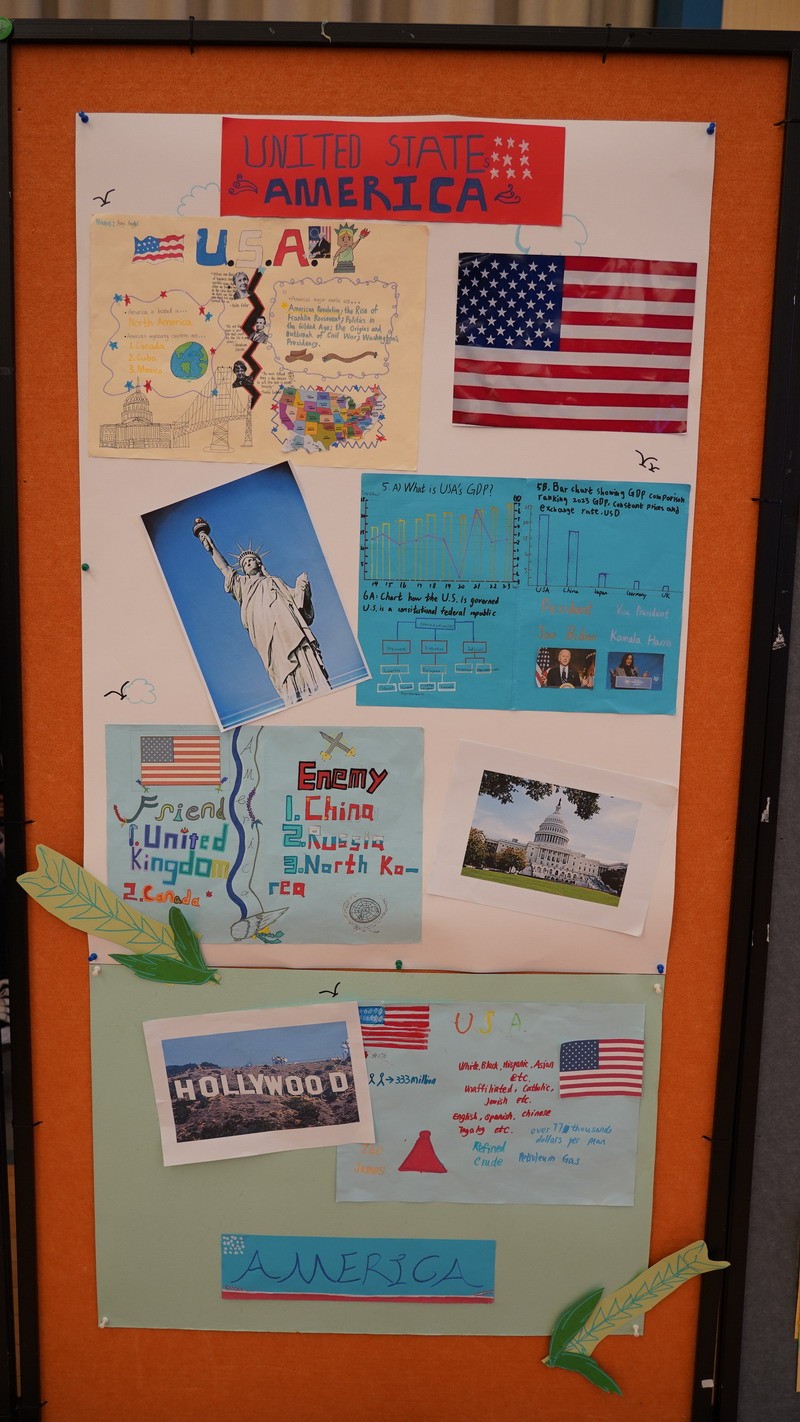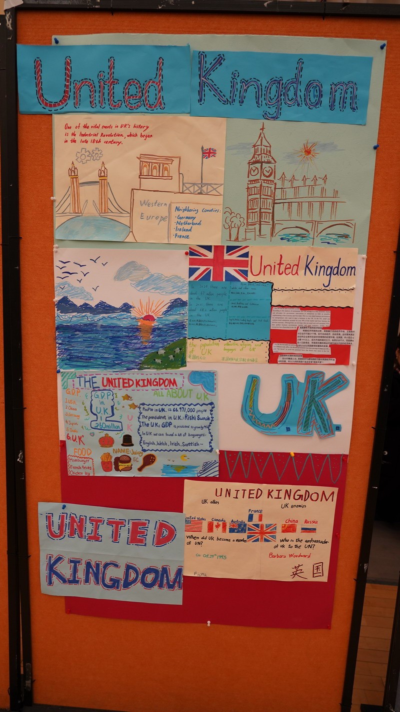 接下来,各国家代表聚在一起形成Country Group,讨论如何更好地展示自己代表的国家。在美术老师的指导下,每个国家的代表们分工完成了海报和展板的制作,有人负责整体设计,有人负责画画,有人负责剪贴,有人负责文字。学生们的团队合作能力得到了很好的锻炼