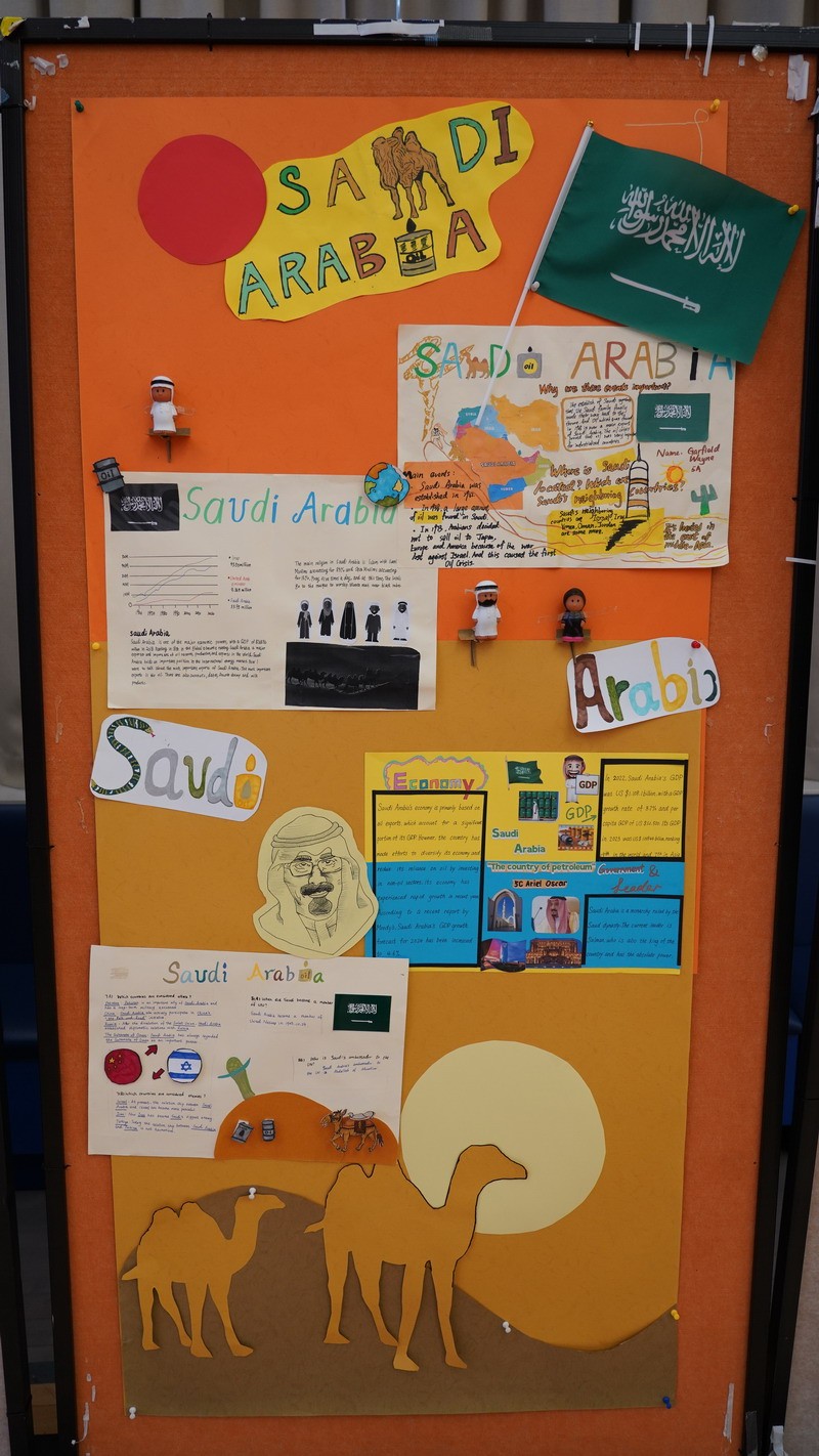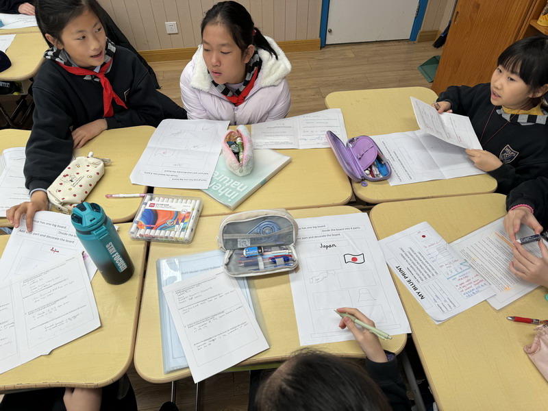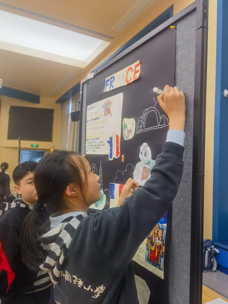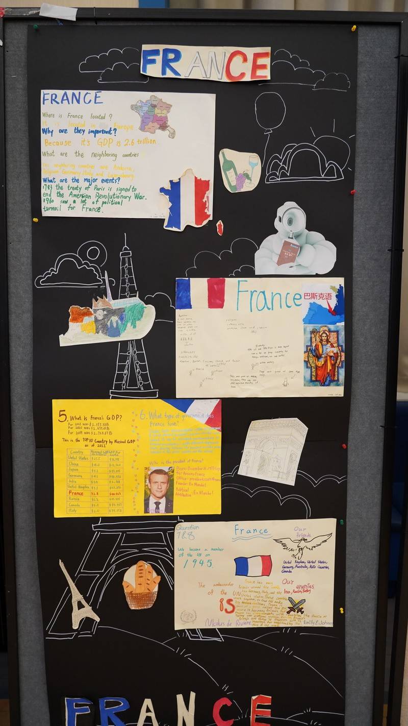 接下来,各国家代表聚在一起形成Country Group,讨论如何更好地展示自己代表的国家。在美术老师的指导下,每个国家的代表们分工完成了海报和展板的制作,有人负责整体设计,有人负责画画,有人负责剪贴,有人负责文字。学生们的团队合作能力得到了很好的锻炼