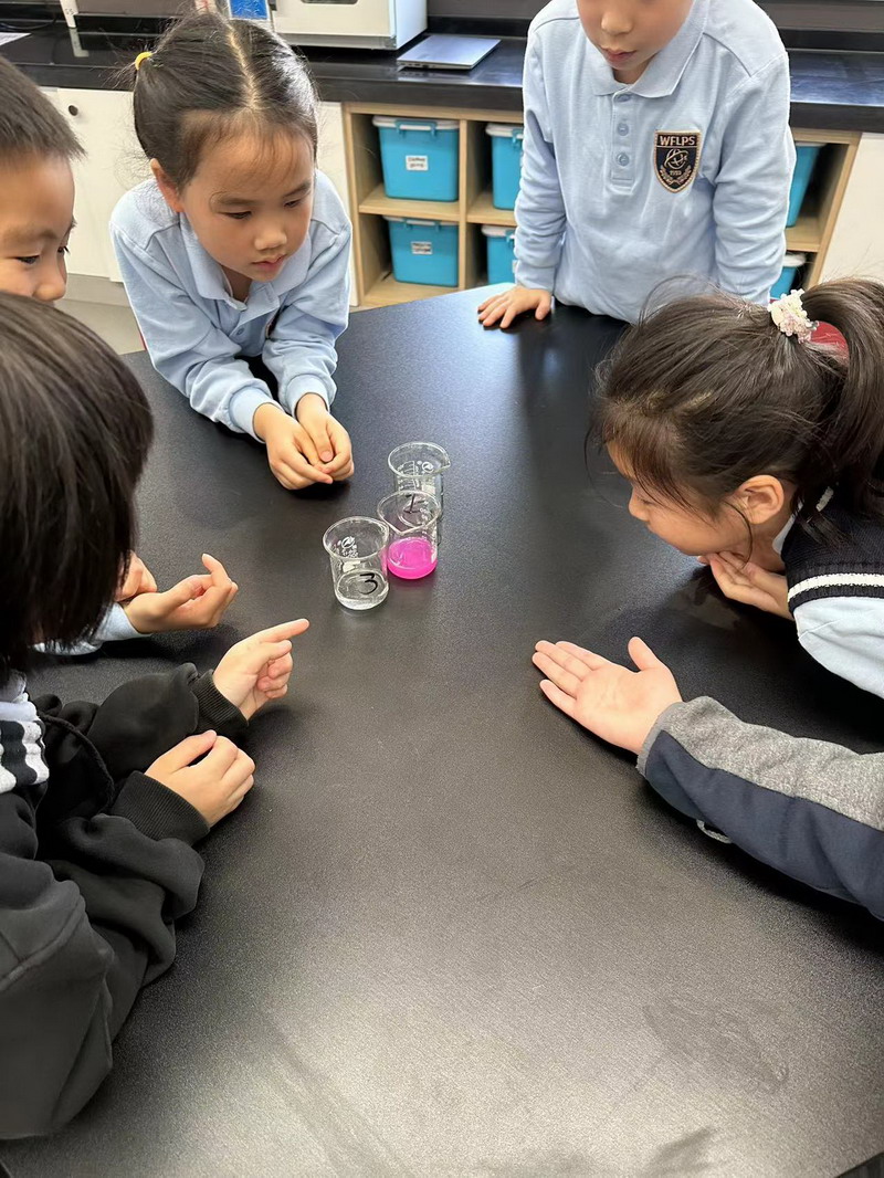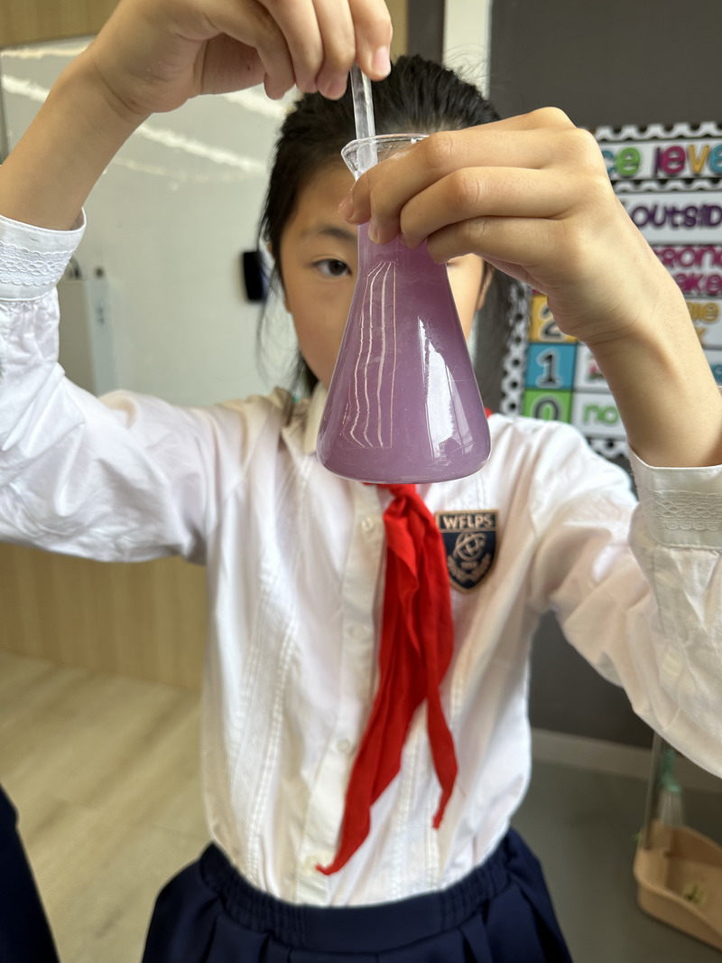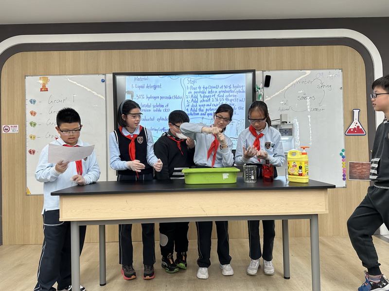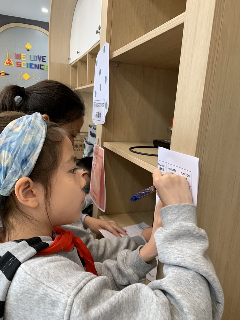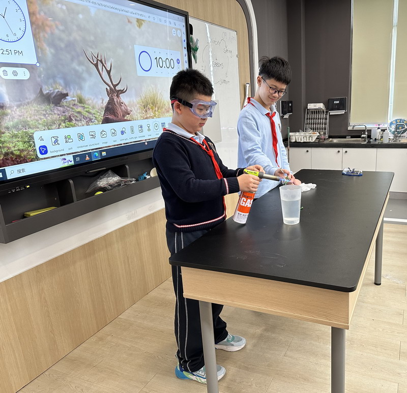 五年级的同学们作为高年级的学长,有着最丰富的科学知识储备。所以他们的科技节活动,老师们并没有规定项目。只要能确保人员和环境安全,可以自备材料做任何想要完成的实验。第一周,各个小组完成的实验的选择,并在第二周进行的展示,展示中不乏亮点。