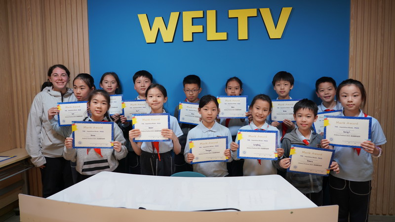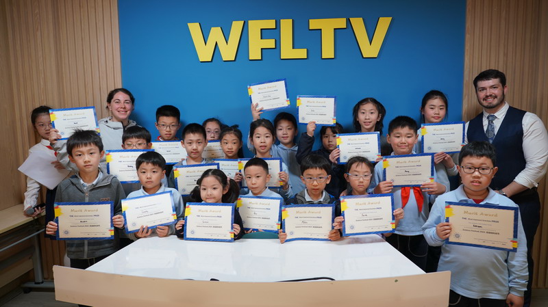 感谢闭幕式主持人,来自5B班的刘珺语和3C班的费翔。