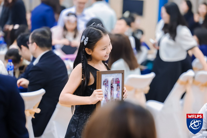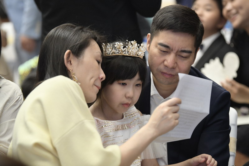 屏幕上滚动着一张张充满活力的全家福,孩子们穿上漂亮挺括的礼服,在布置一新的体育馆内,和爸爸妈妈留下温馨的合影,记录下美好的一刻。