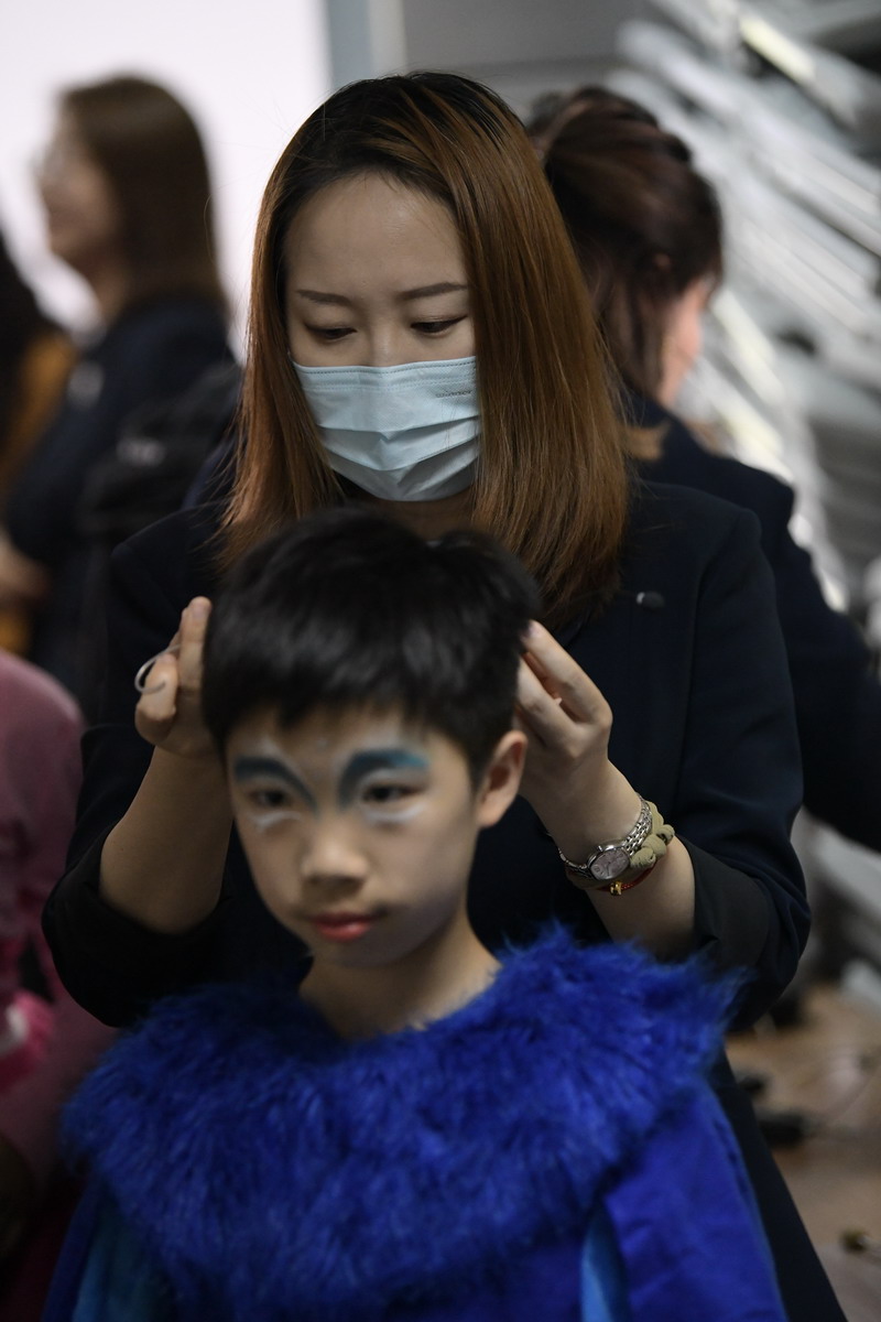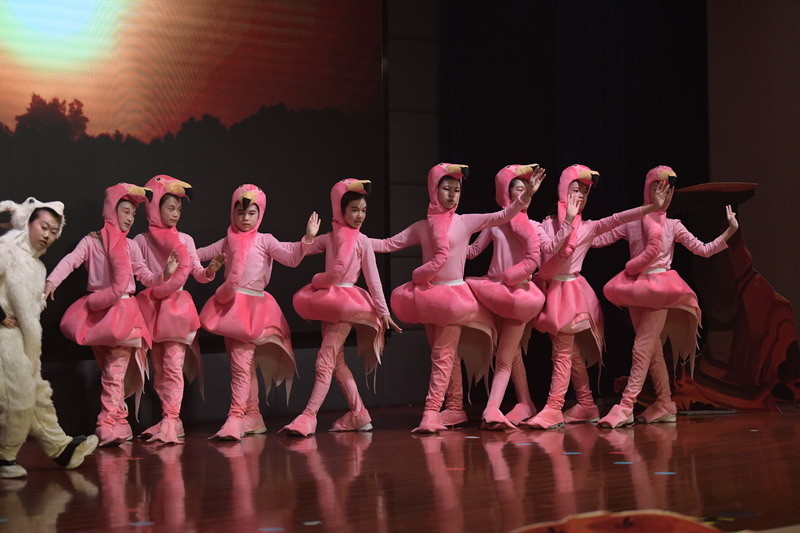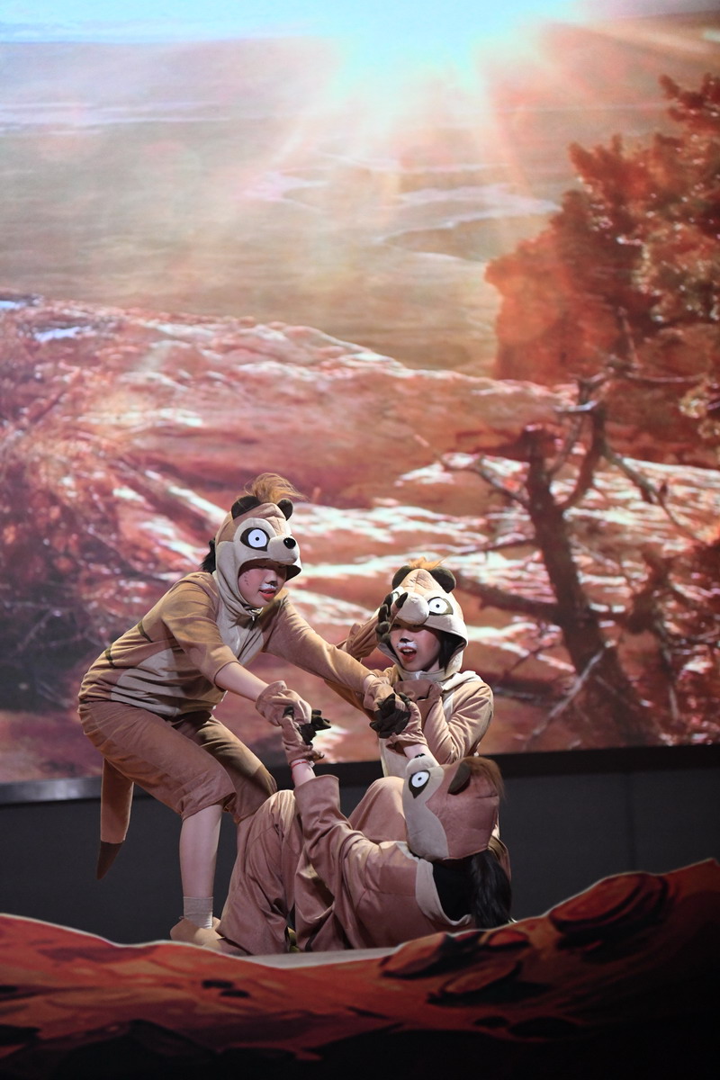 一场大戏凝聚了全体师生的智慧与心血。群像动物在形体陶老师的舞蹈训练后,尽情展现了草原动物的和谐之美,广袤草原的壮丽之美。灯光音响在一次次大联排中调整完善,精益求精。