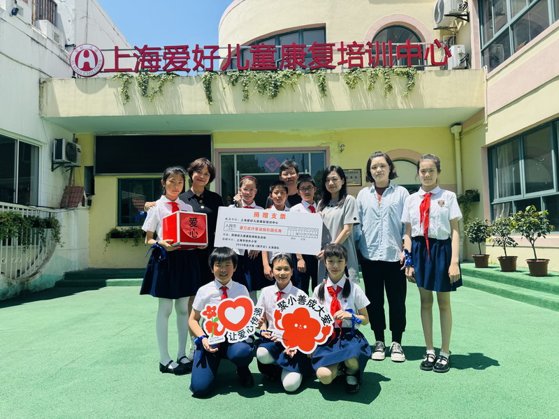 5月18日上午,双语部五年级师生代表来到了上海爱好康复培训中心,将演出所筹共计12079.50全部捐出,用于上海爱好康复培训中心对孤独症儿童的培训课程和活动。