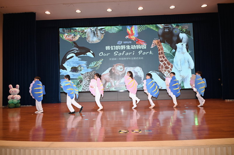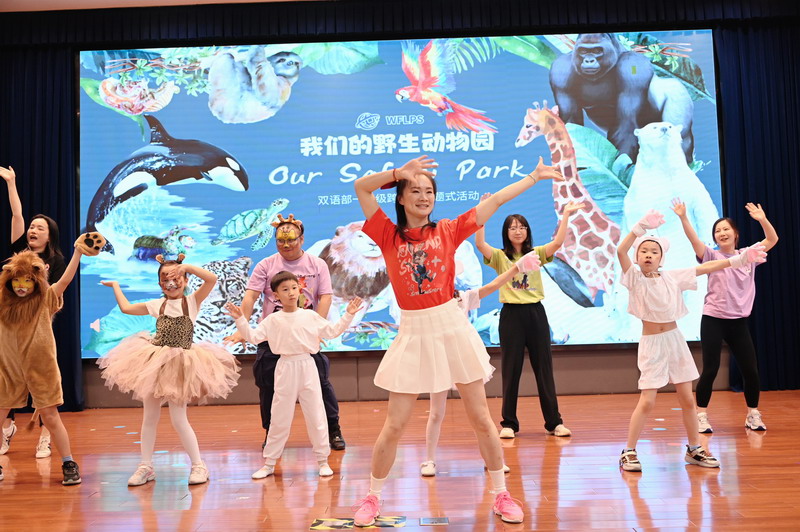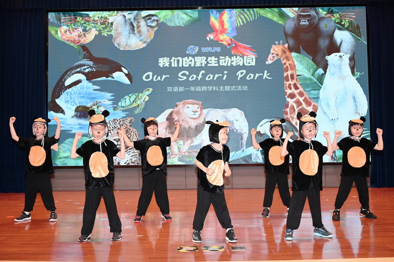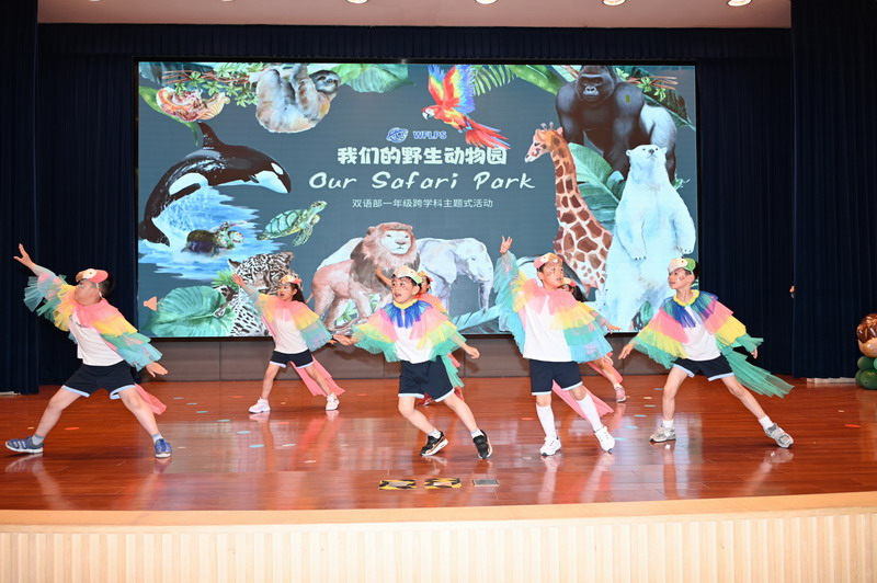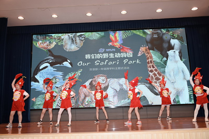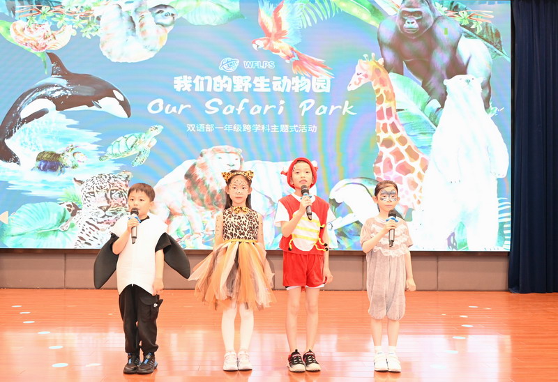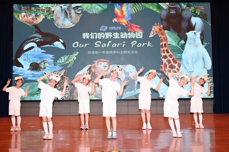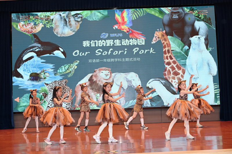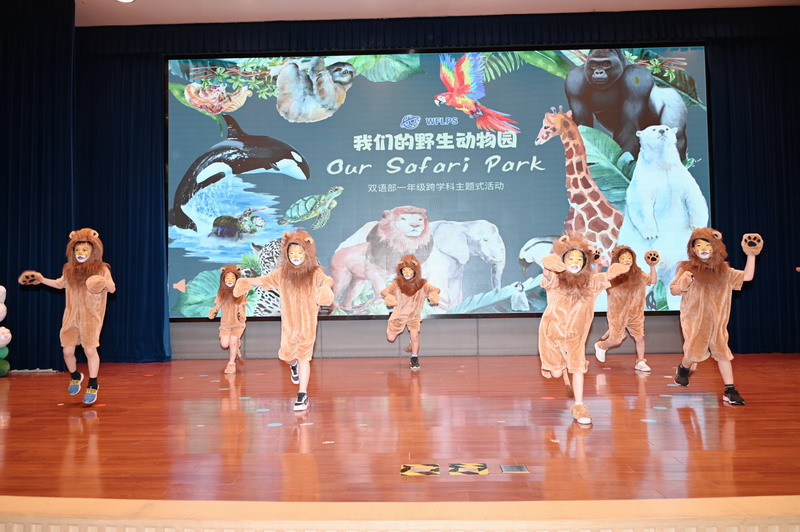 夏季的第二个时节,也是万物稍得盈满却未及全满的一天,世外双语部一年级小朋友于当天将体育馆变幻成一个“Safari Park”,在此进行“野生动物”的主题式汇报展示。