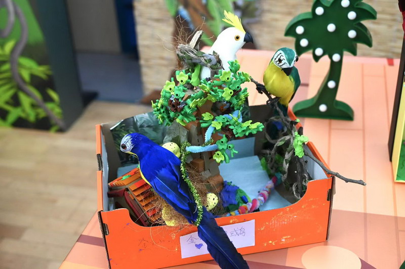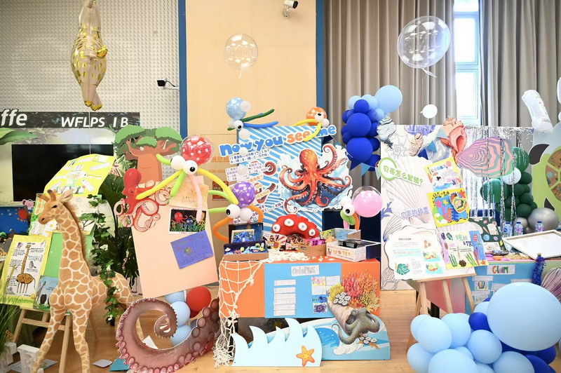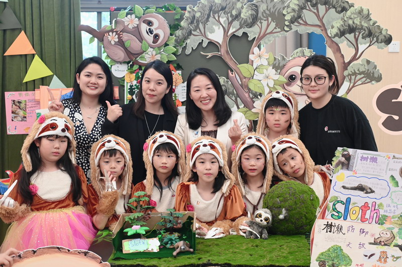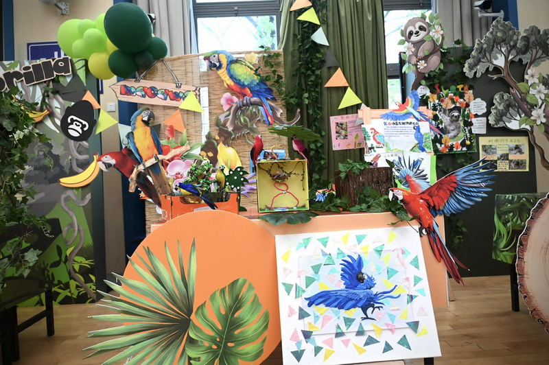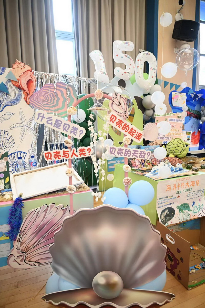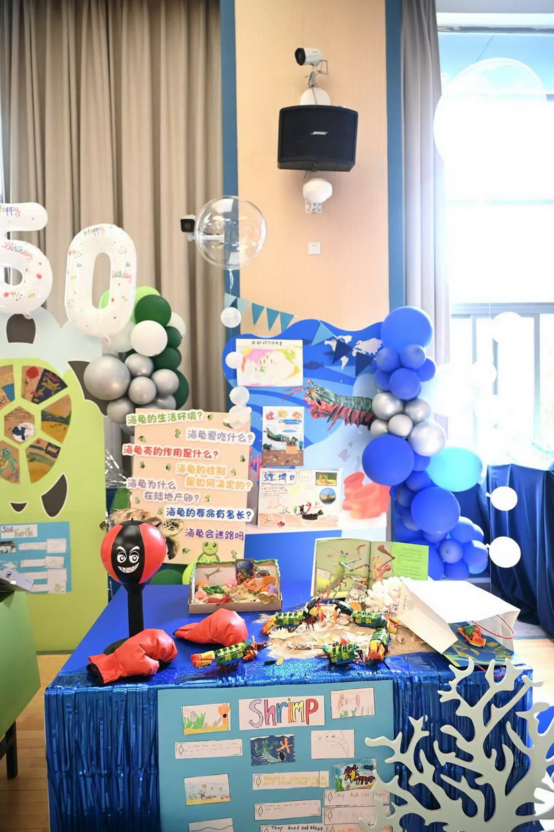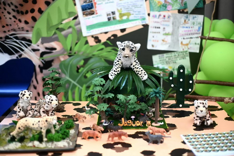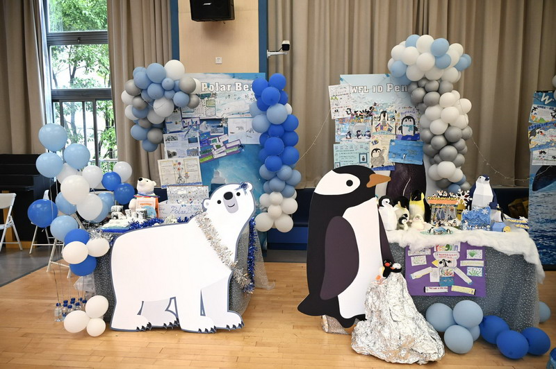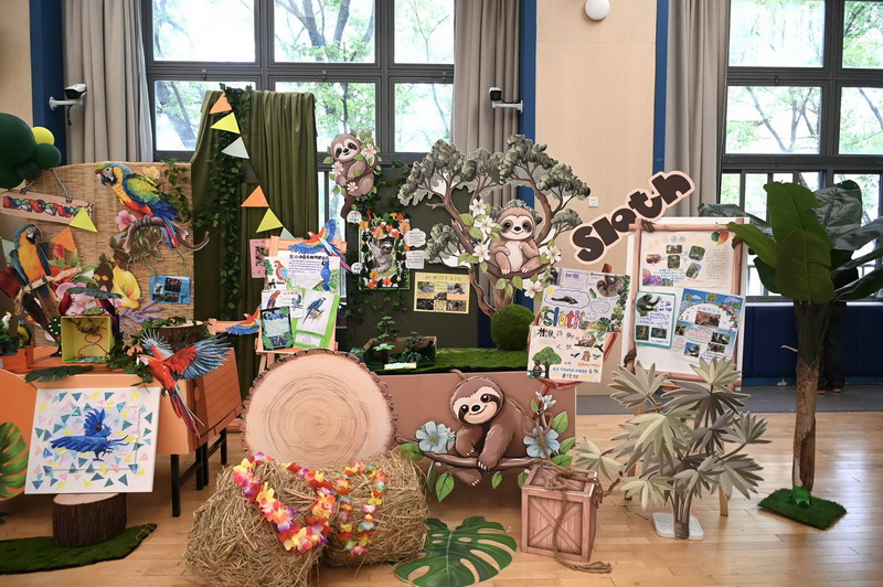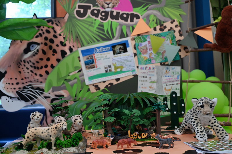 一年级四个班分别以雨林动物、海洋动物、极地动物和草原动物为主题,共选择了16种动物展开历时两个月的研究。萌宝们先是通过查阅书籍、上网研究等途径搜集各种动物的资料,了解它们的生长环境、生活习性,学校里的各科老师们又帮助孩子们创编动物舞蹈、绘制动物小报,最后形成今日的各个展台。