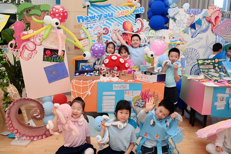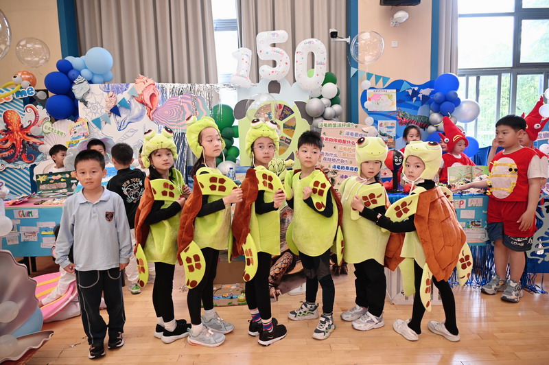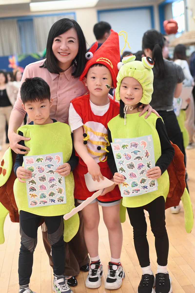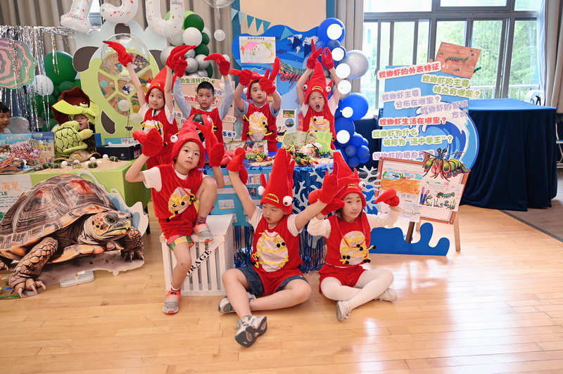 一C班的豆丁们变身为海洋生物——贝壳、海龟、螳螂虾和章鱼,让我们领略深海世界的神奇。