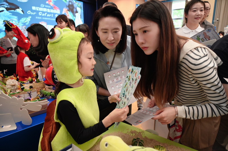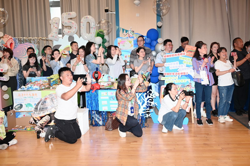 当“小满”与“520”撞了个满怀,我们邀请挚爱的父母们来参观宝贝的主题式汇报展。每个小朋友充当着展台的动物讲解员,落落大方地向来宾介绍自己的研究成果,并不时提出有趣的问题来互动。例如:螳螂虾最长是多少厘米?极地企鹅出生有多高?答出正确答案,即可在《WFL野生动物导览册》上集全野生动物章留念。