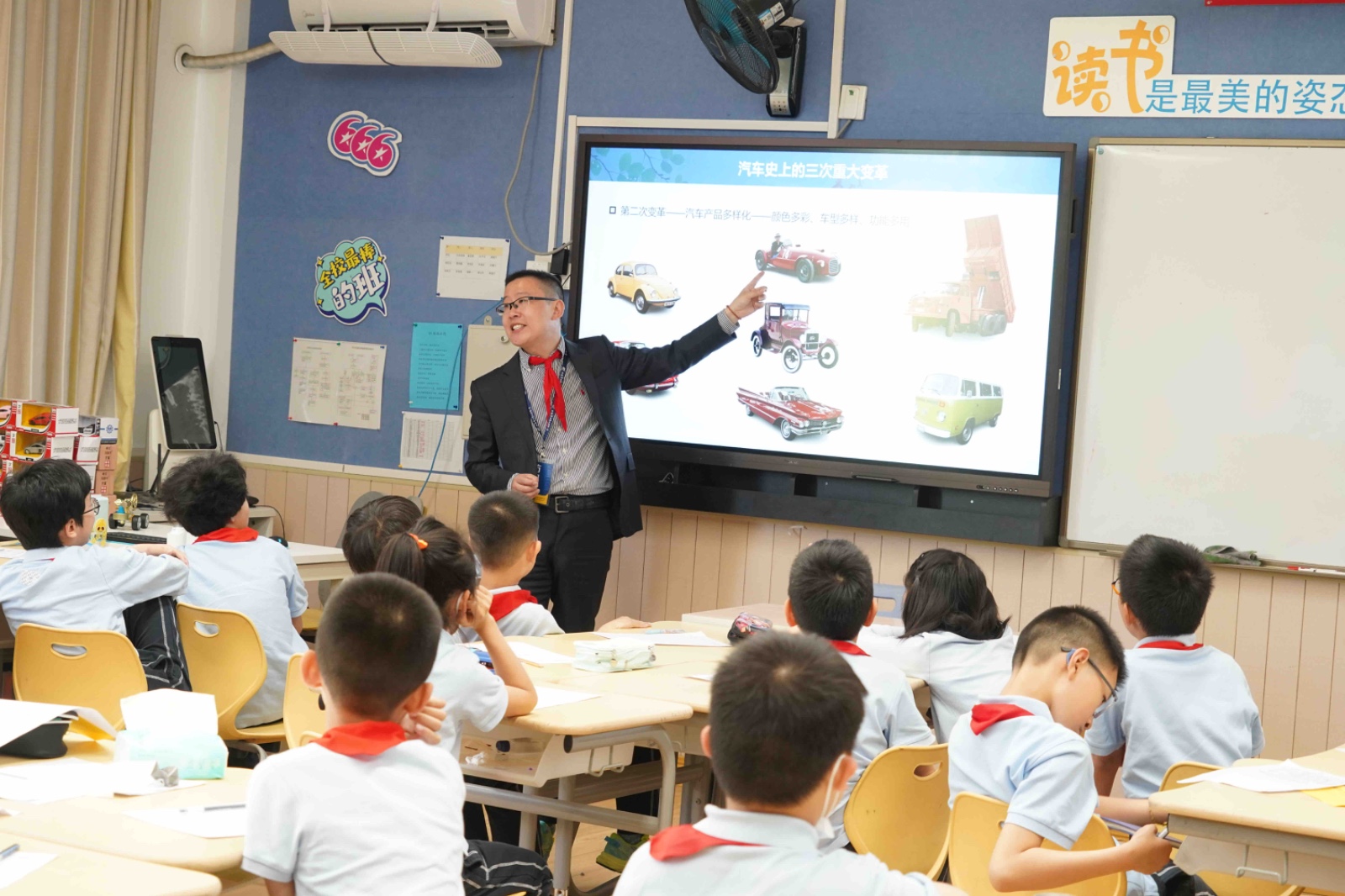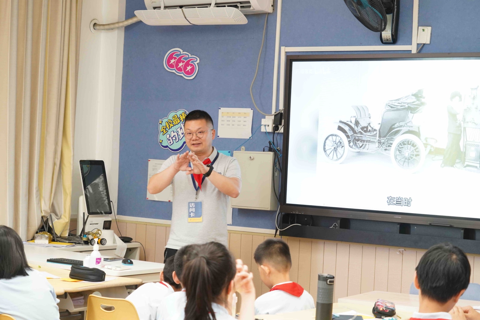 四A班杨爸爸向同学们介绍了一些基本的法律知识,并就现阶段比较热门的校园欺凌的话题进行了深入探讨;马爸爸揭示了光谱技术现阶段在各行各业的广泛应用;赖爸爸展示了汽车的发展史以及智能汽车未来的前景;李爸爸同样从事汽车行业,他着重解密了无人驾驶技术。