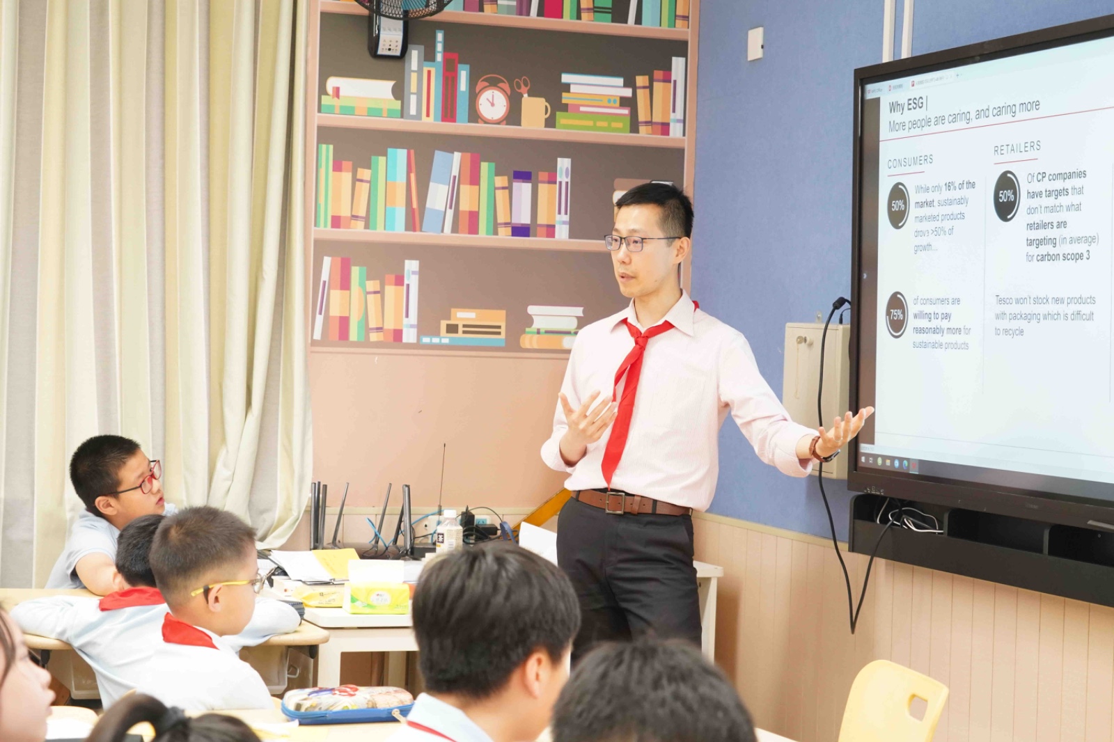 四B班的讲座也让小朋友们颇感兴趣。钟爸爸用浅显易懂的方式解释了ESG在我们生活中应用;汪爸爸用一些简单的小游戏激发同学们对数学的兴趣;王爸爸让大家了解了数字化在当今社会的重要性;王爸爸揭秘了芯片的制作流程,同学们在讲座中掌声不断。