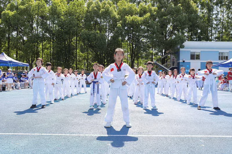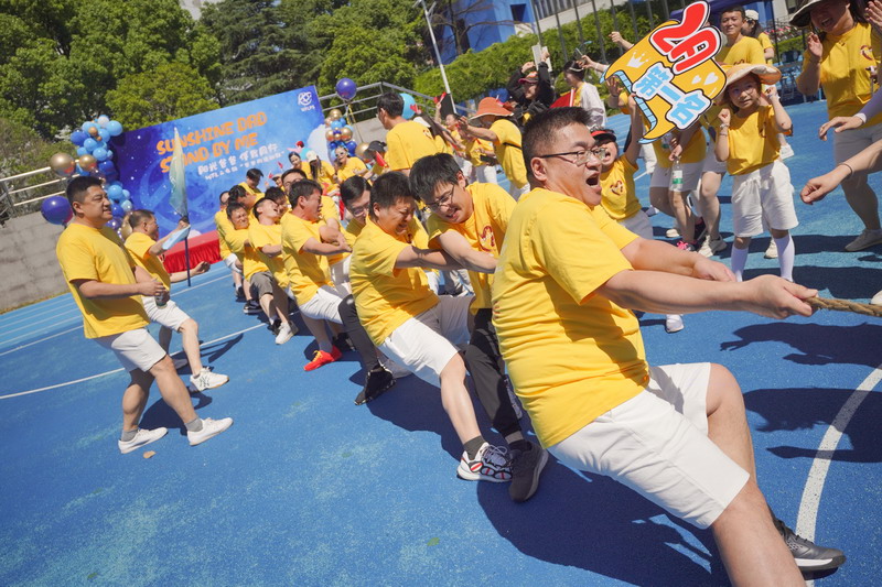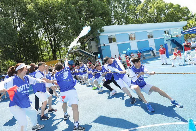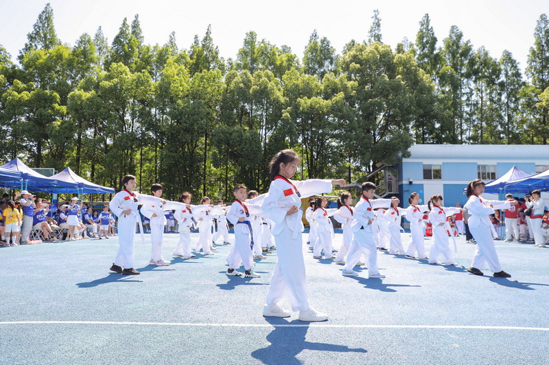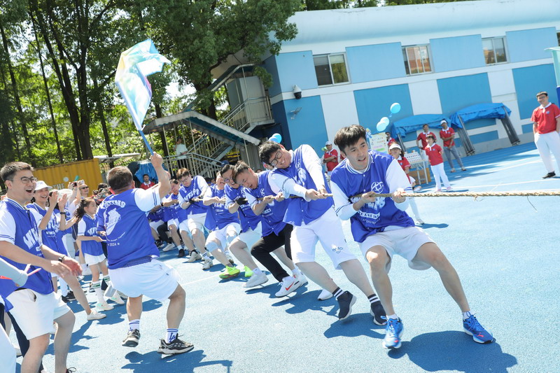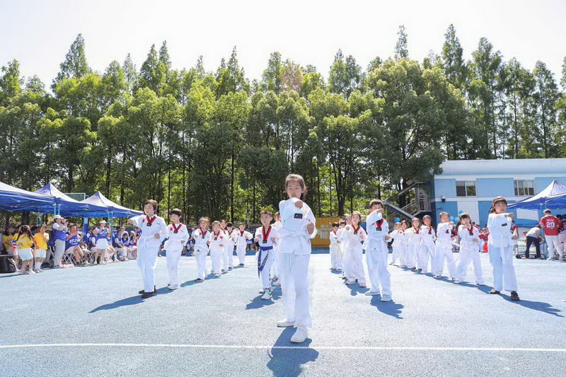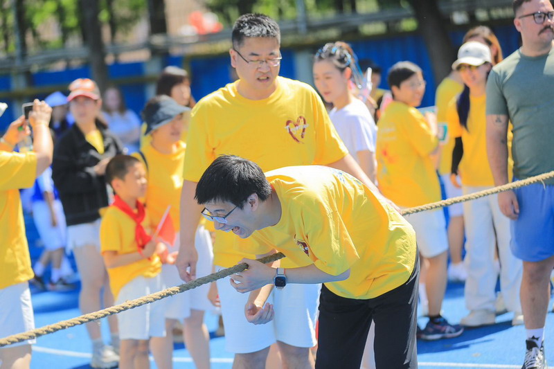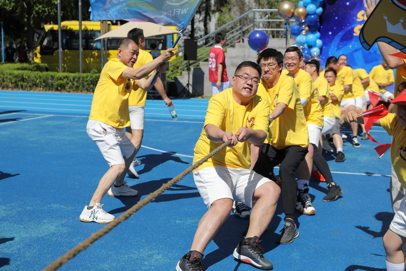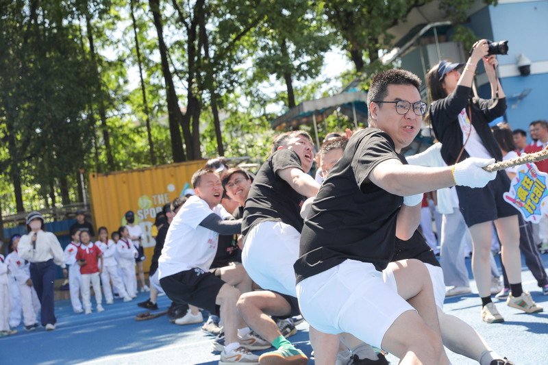 拔河比赛不仅展现爸爸们的力量,更加考验团队的凝聚力和意志力! 孩子们为参与拔河的爸爸们振臂呐喊,加油鼓劲。拔河决赛前,部分孩子们和妈妈们分别展示了跆拳道及拳击操,为爸爸最后的奋力一搏加油鼓劲。
