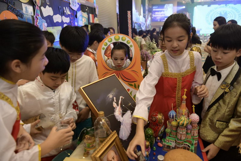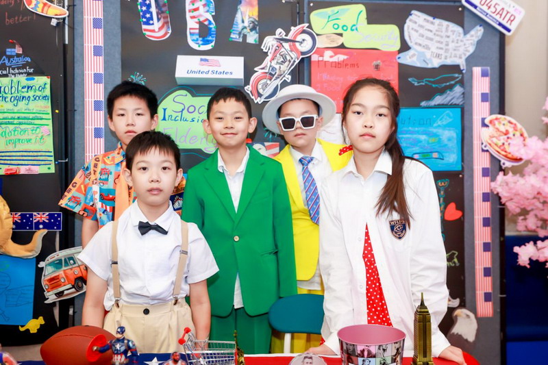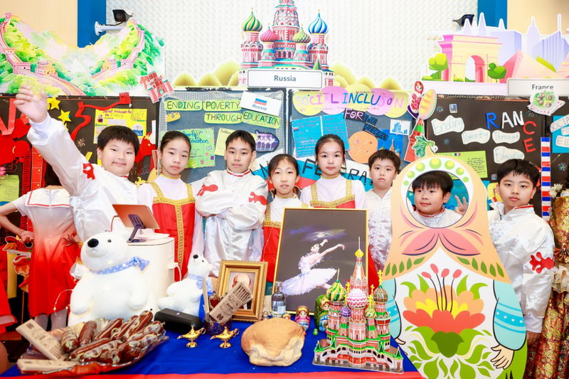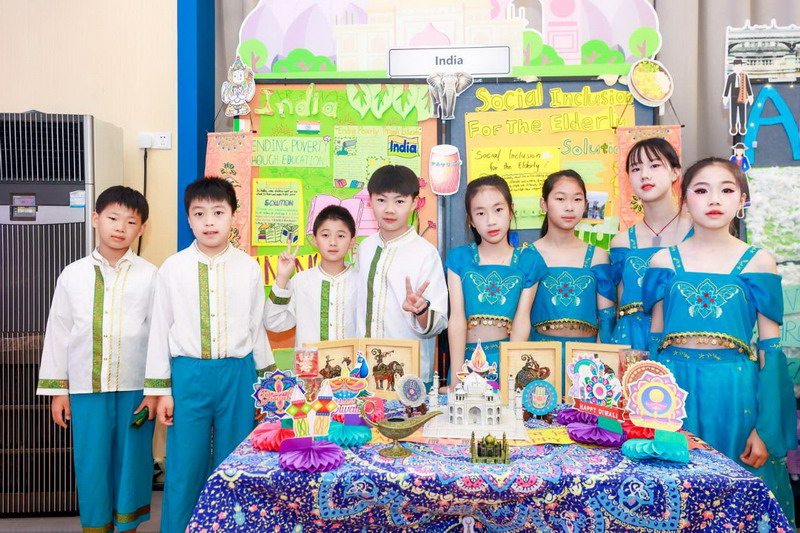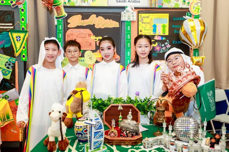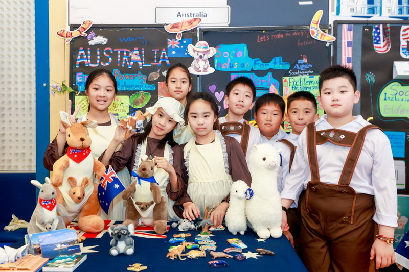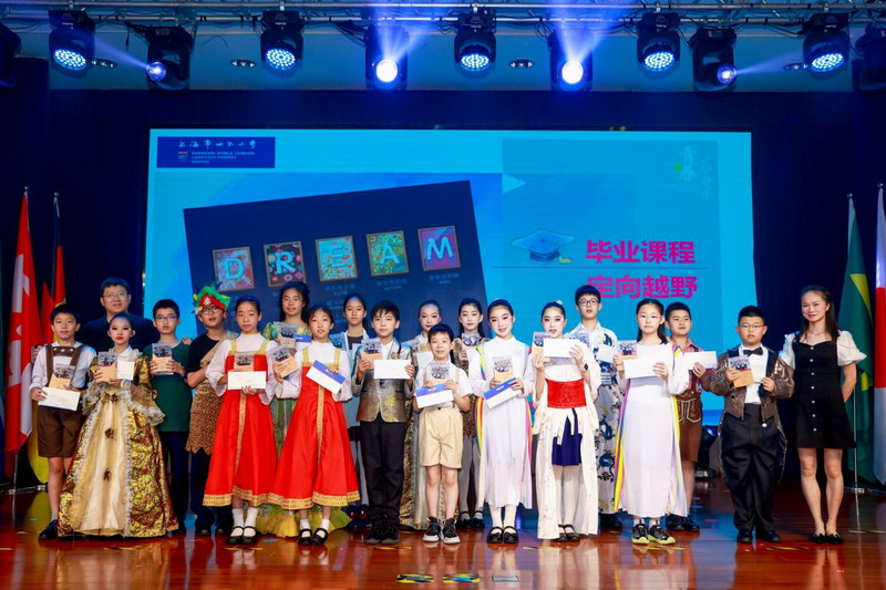 毕业课程中,同学们领略了世界文化的博大精深,采撷了语言文字的趣味盎然。他们身着各国服装,在精心设计的毕业展板前,向来宾介绍毕业课程取得的成果。