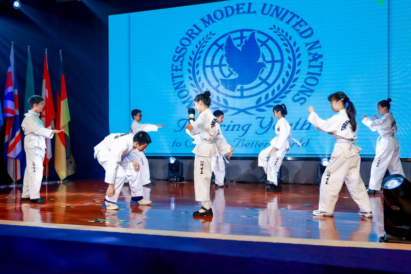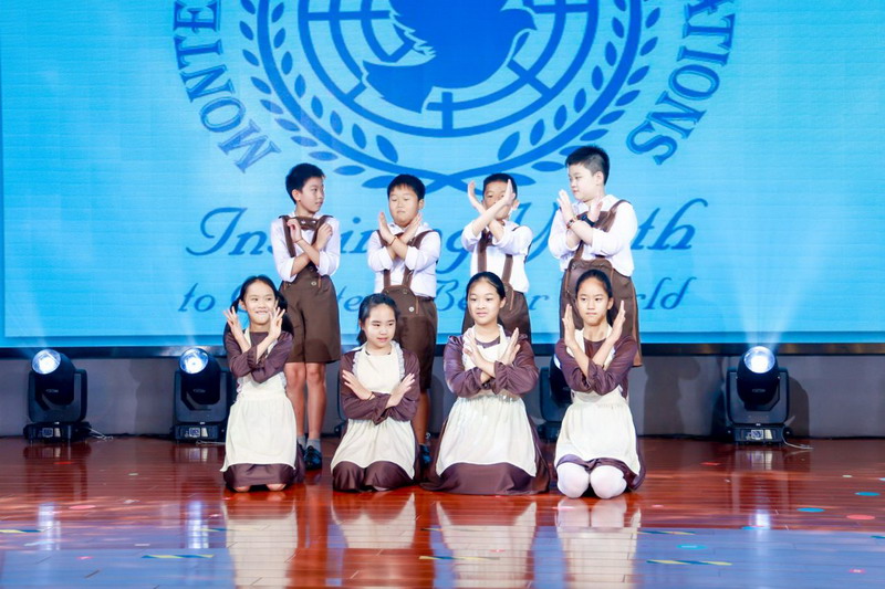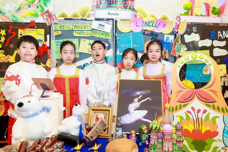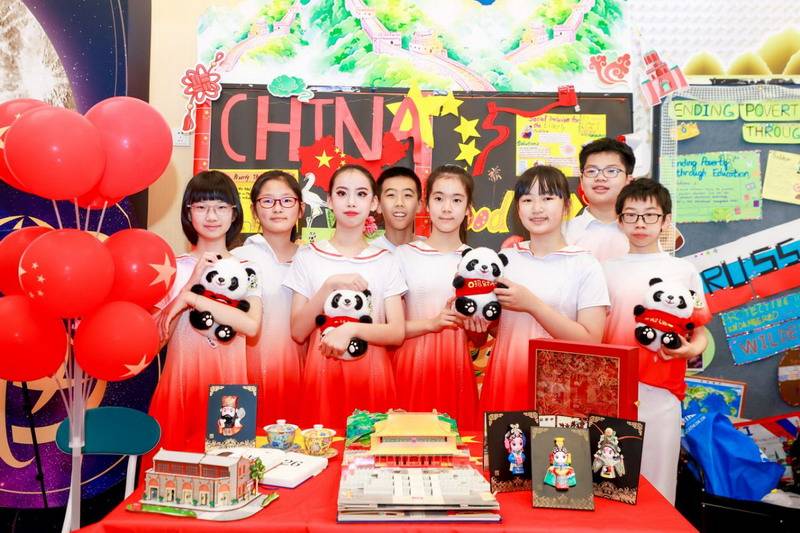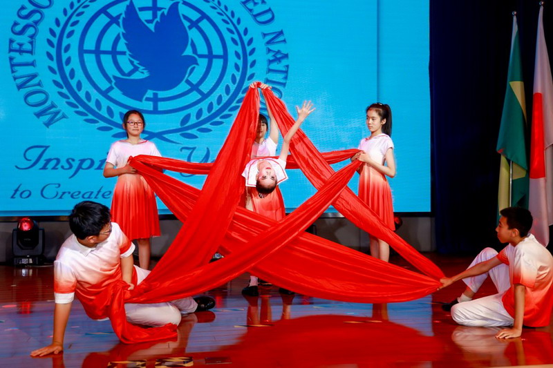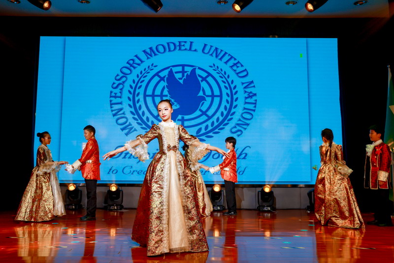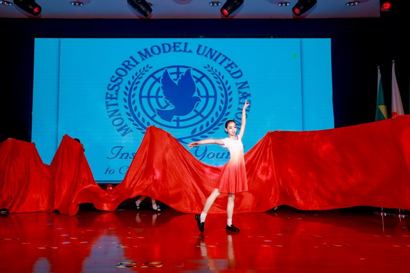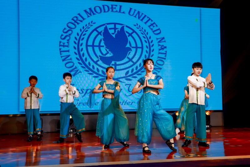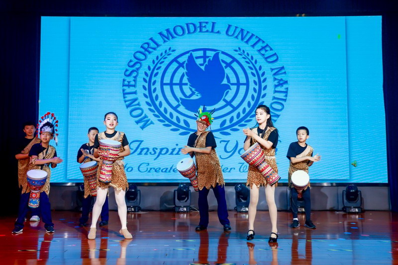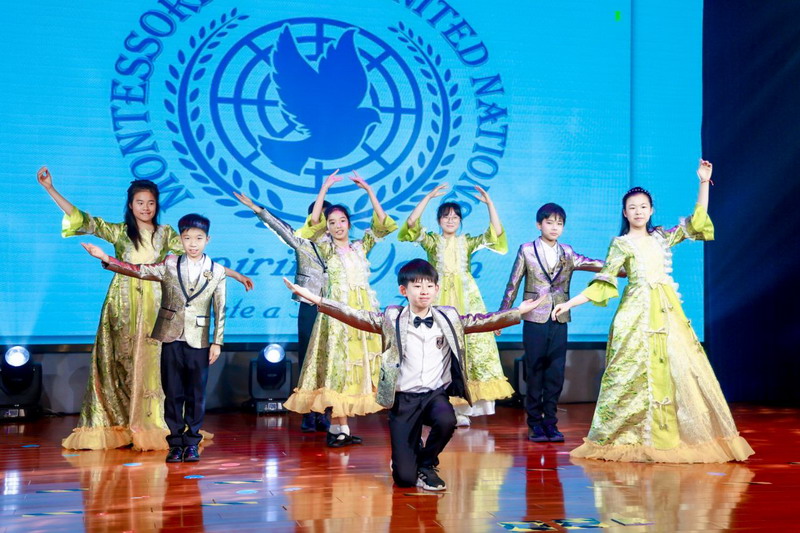 各国风情的特色音乐声中,全体五年级同学化身文化使者,翩翩起舞,他们用音乐和舞蹈展现了各国的文化与魅力。