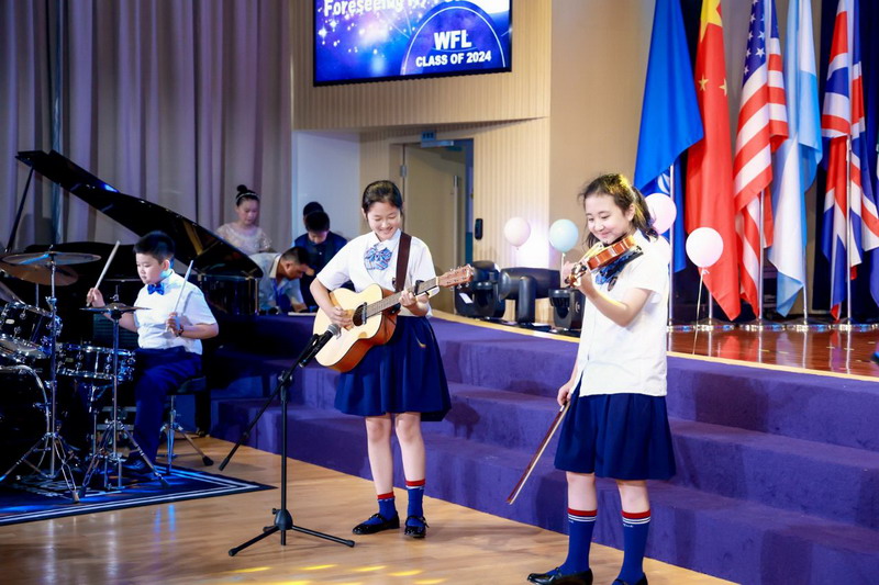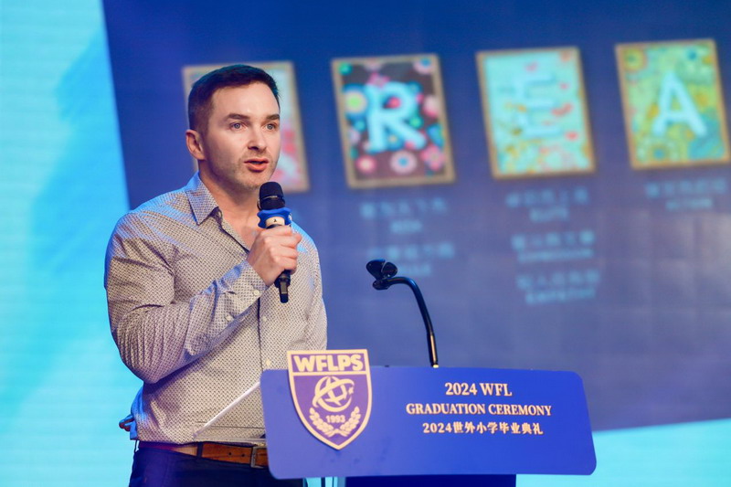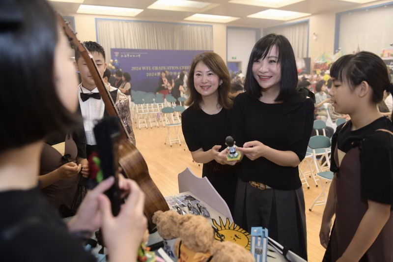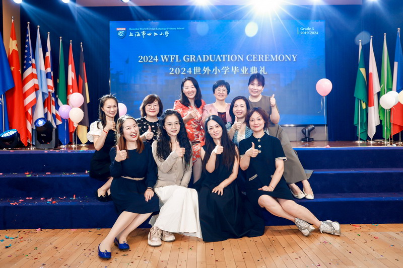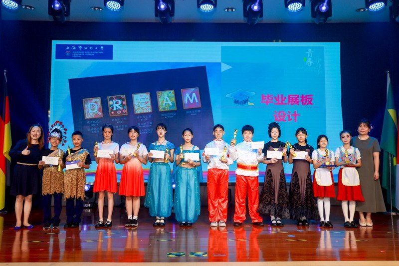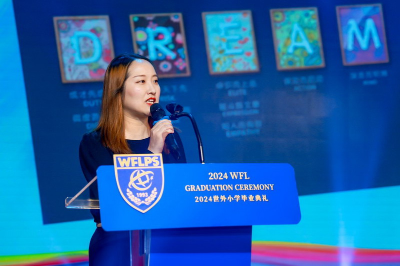 毕业课程之商业挑战赛的获奖团队上台,为母校赠送礼物。五只不同颜色的WFLPS香薰小熊代表着热情、智慧、朝气、梦想和信仰,小小礼物是2024届毕业生对母校的深情告白,它凝聚着世外学子对老师的无限感激。