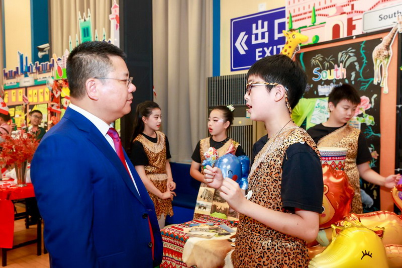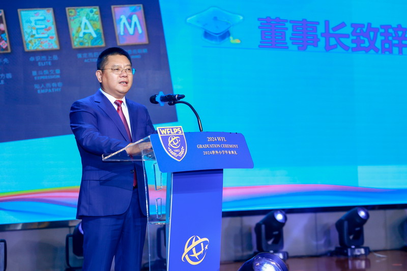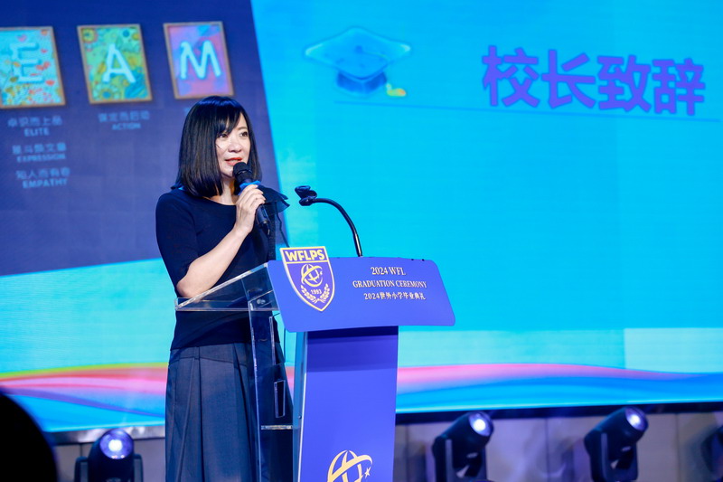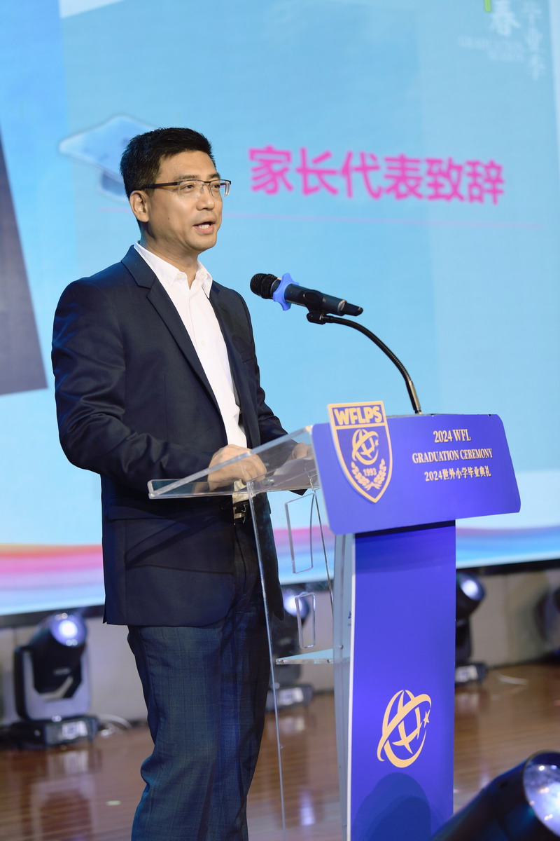 均瑶集团董事长王均金先生,百瑞彩票校长张悦颖女士致辞,希望同学们始终保持学习的热情,拥有爱和共情,用世界眼、现代脑和中国心去拥抱美好的未来。常设家委代表封志刚先生也上台发言,给予了同学们美好的祝福。