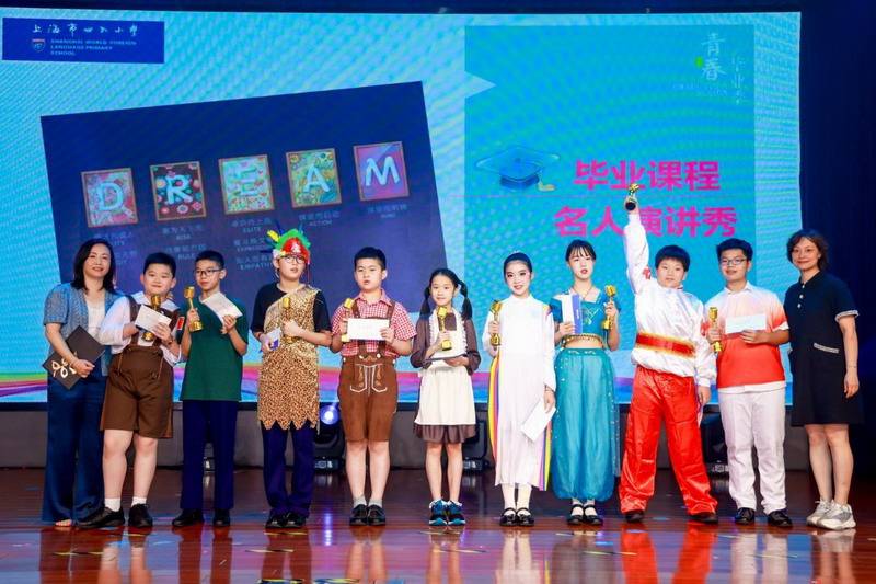 介绍精彩纷呈,颁奖仪式更是激动人心。模拟联合国、毕业大戏、小小商业挑战赛、演讲与口才、定向越野……毕业课程项目负责老师宣读了优秀学员名单,全体五年级老师为他们颁发了荣誉奖杯和奖学金。