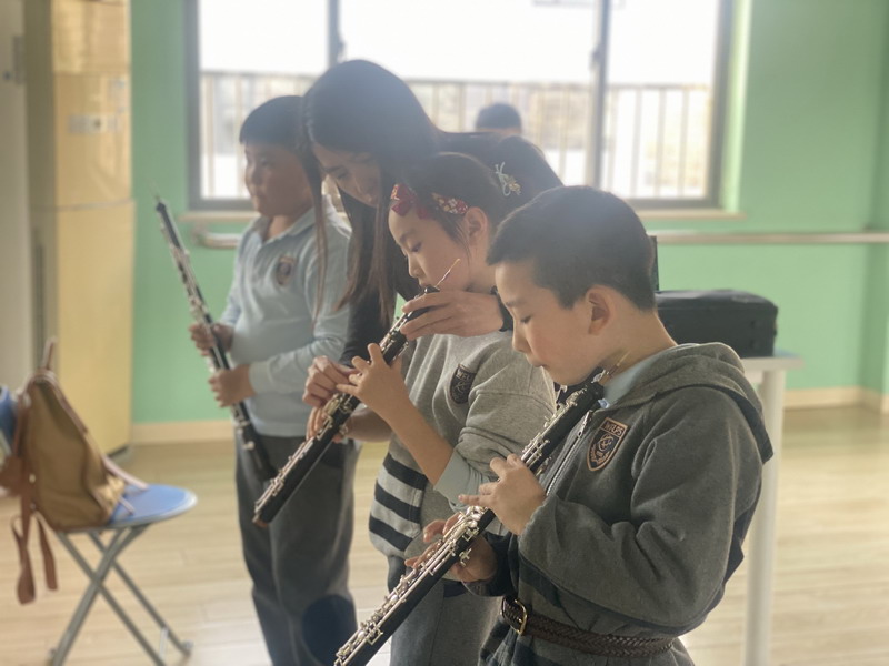 2017年世外“魔角”乐团成立,至今已有7个年头。授课老师均来自上海交响乐团的首席演奏家演奏员及上音等音乐专业院校的硕士研究生毕业。从一年级入校,经过专业老师细心观察,全方面考量,在一下时,挑选出一批具有音乐素养的孩子开始进行为期一年的视唱练耳课,随后由专业老师面试,分配器乐,正式进入乐队,成为魔角乐队的一名成员。现今百瑞彩票的这批小魔角木管乐队经过坚持不懈的努力,都取得了各自的进步和成绩。