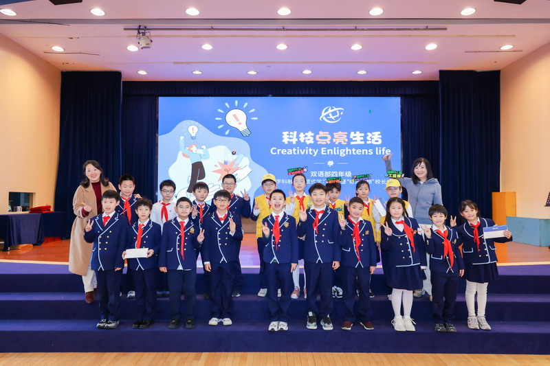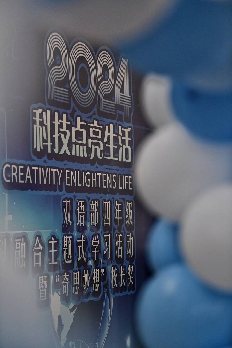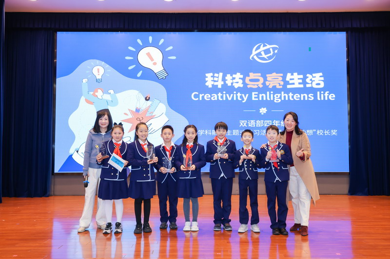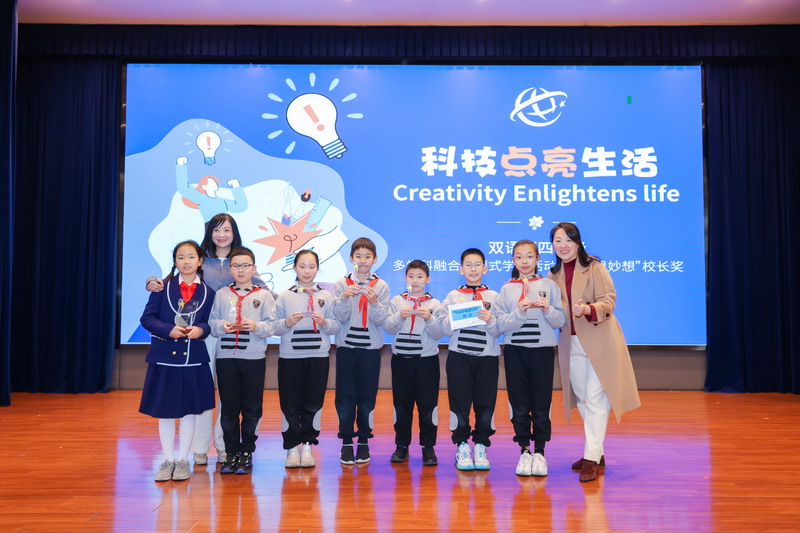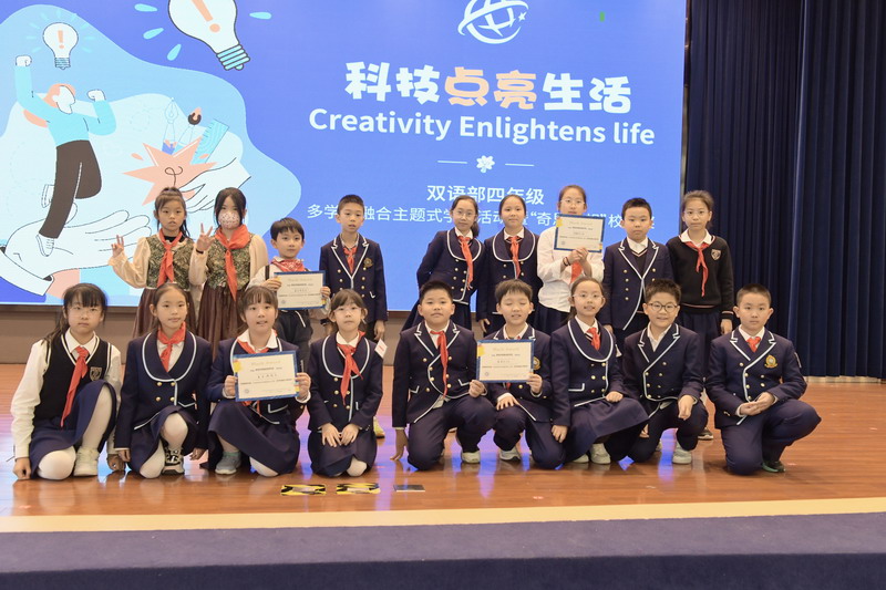 11月27日下午,双语部四年级“科技点亮生活”多学科融合主题活动暨“奇思妙想校长奖”颁奖仪式在东部体育馆隆重举行。双语部四年级全体学生呈现了一场思维探究的盛宴。敬爱的校长老师们,亲爱的爸爸妈妈们和三年级的小伙伴们出席了此次活动。