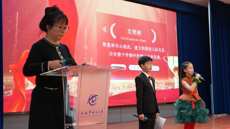 学校还特别表彰了在徐汇区艺术单项比赛和上海市学生信息素养提升实践活动中取得优异成绩的学生,他们的才华与努力为学校赢得了荣誉。同时,热爱阅读的“阅读之星”们也获得了应有的认可,他们的阅读热情不仅丰富了自身的精神世界,也带动了周围同学对阅读的热爱。值得一提的是,本次结业式还新增了“团队合作奖”,旨在表彰那些在学习和活动中展现出团队协作能力的班级。这一奖项的设立,进一步强调了团队合作的重要性,鼓励同学们在未来的学习和生活中更加注重团队精神和协作能力的培养。